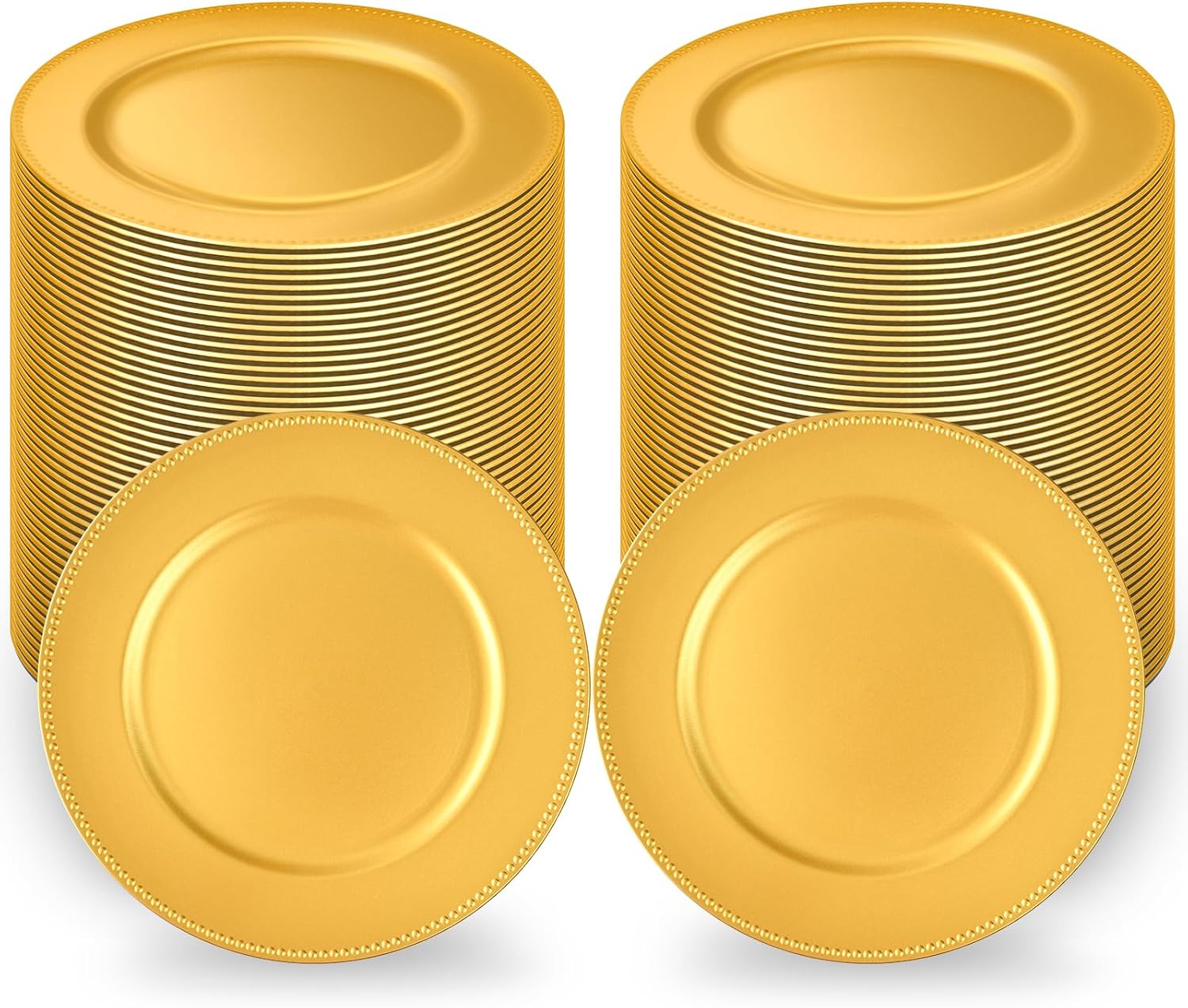100Pcs Gold Charger Plates Bulk Wedding – 13″ Premium Gold Chargers for Dinner Plates, Decorative Charger Plates for Events & Parties