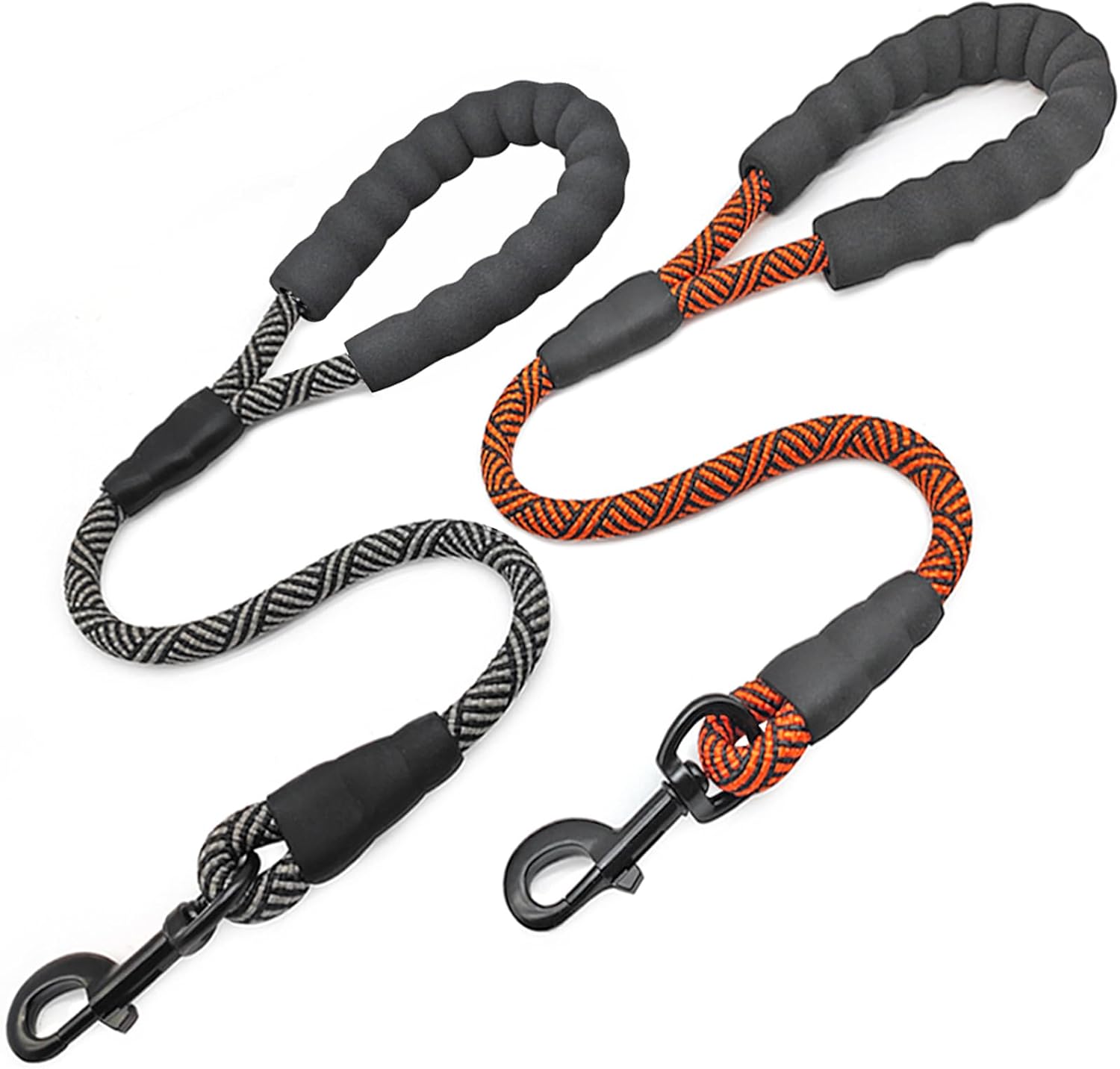 2 FT Short Dog Leash – 2 Pack Nylon Rope Traffic Leash Comfortable Padded Handle- Strong Training Lead for Small Medium Large Dogs (Black+Orange, 2 Foot)