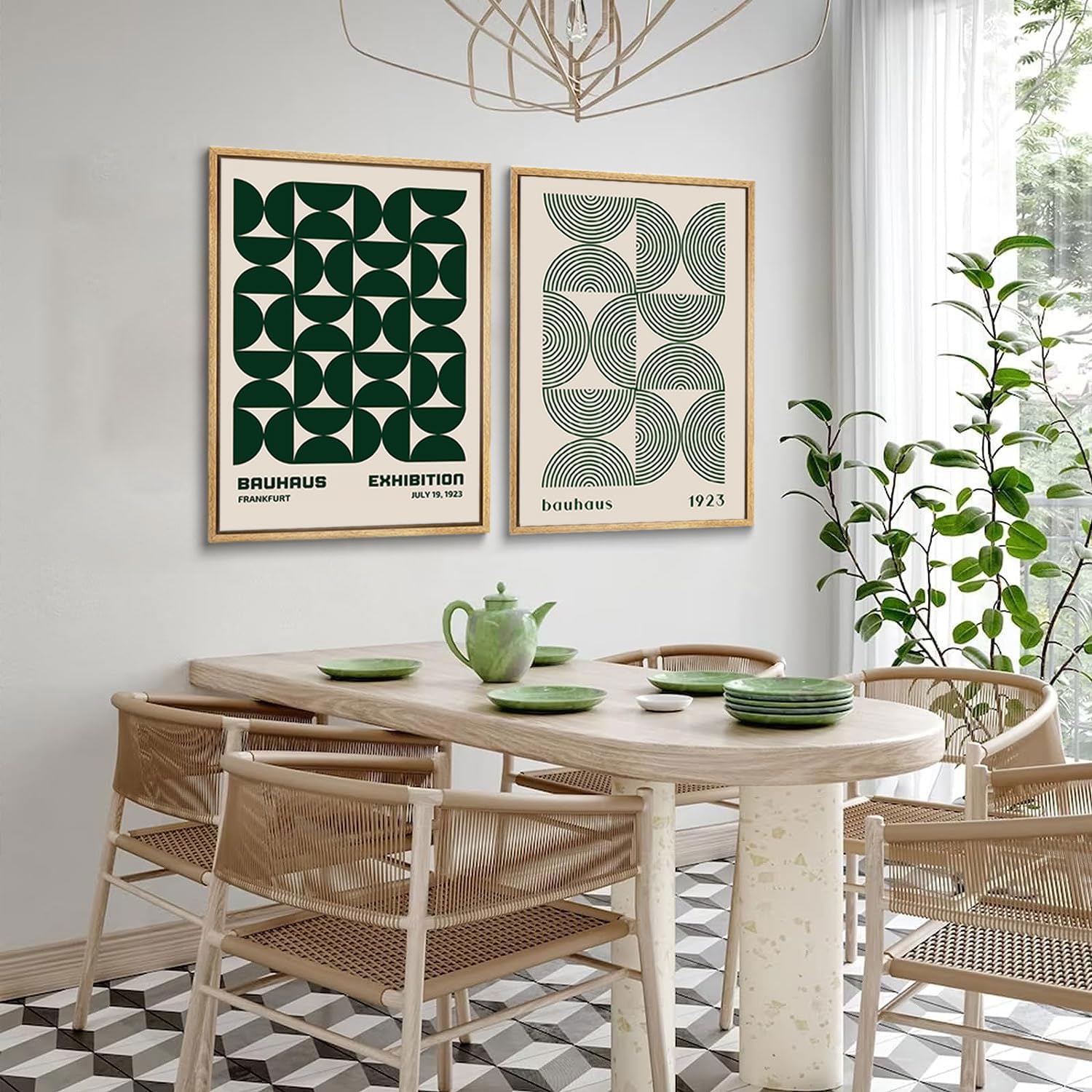 - 【MID CENTURY DECOR】:This Mid Century Modern Wall Art Set Captures The Essence Of The Green Bauhaus.This Simple Yet Modern Bauhaus Poster Features An Eye-Catching Design. Stylish Geometric Accents With Bold Green Lines And Clean Shapes Will Add A Touch Of Sophistication To Any Room.