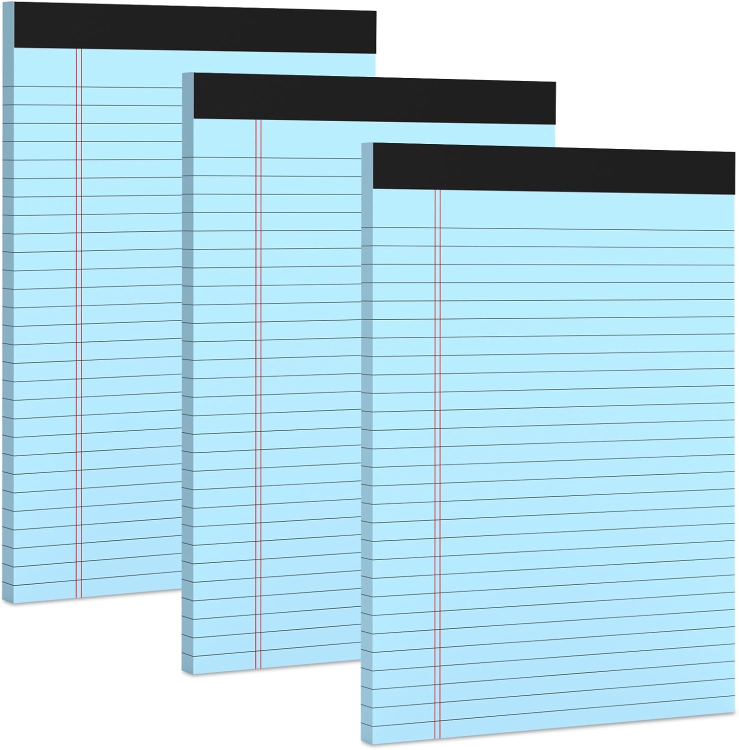 - 【Premium Legal Pads】The blue legal pad 8.5 x 11 is made of 70gsm paper, which is thicker than a typical writing notepad. Blue legal note pads 8.5 x 11 letter lined paper pads has black lines and double red margin lines on left, Sturdy white cardboard back allows you to hold the pad in your hand and write smoothly on the go, enjoy a smooth writing experience in everyday paper use and prevent ink from being left on the back or indented writing on the next sheet of paper. Suitable for a variety of pens.