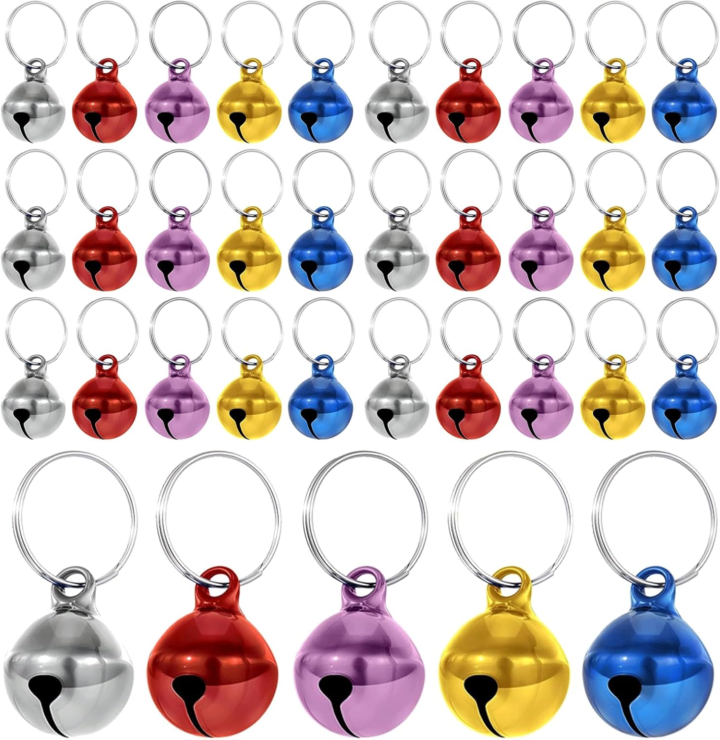 35PCS Cat Bells for Cat and Dog Collar, Mixed Colors Pet Bell Pendant with Loud Crisp Sound, Anti-Lost Training Bell Keyrings Charm for Pet Collar Pendant Accessories