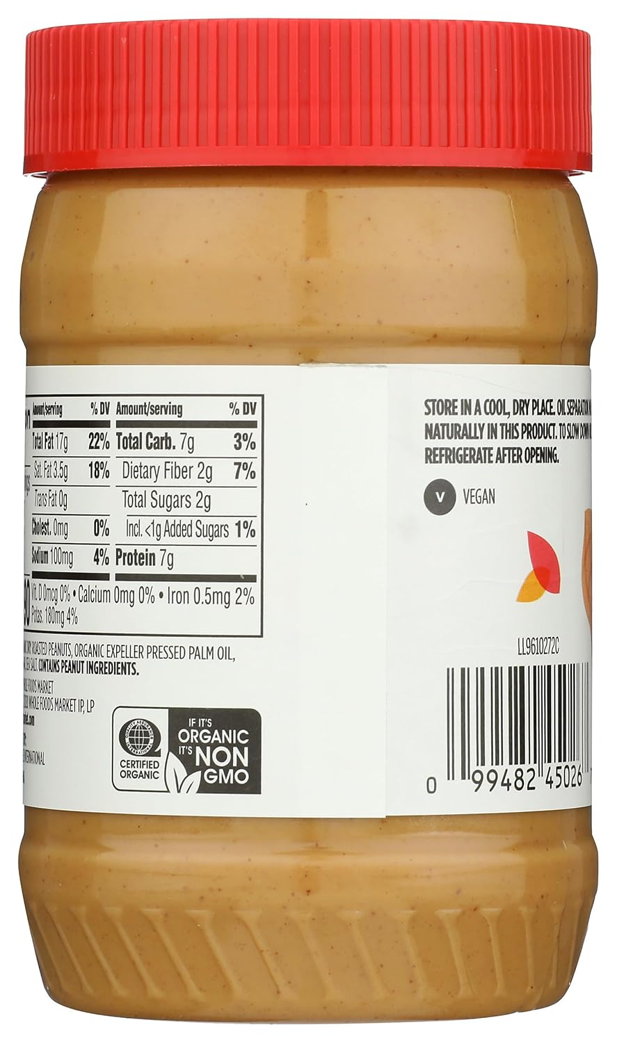 365 by Whole Foods Market, Organic Sweetened Smooth Peanut Butter, 16 Ounce