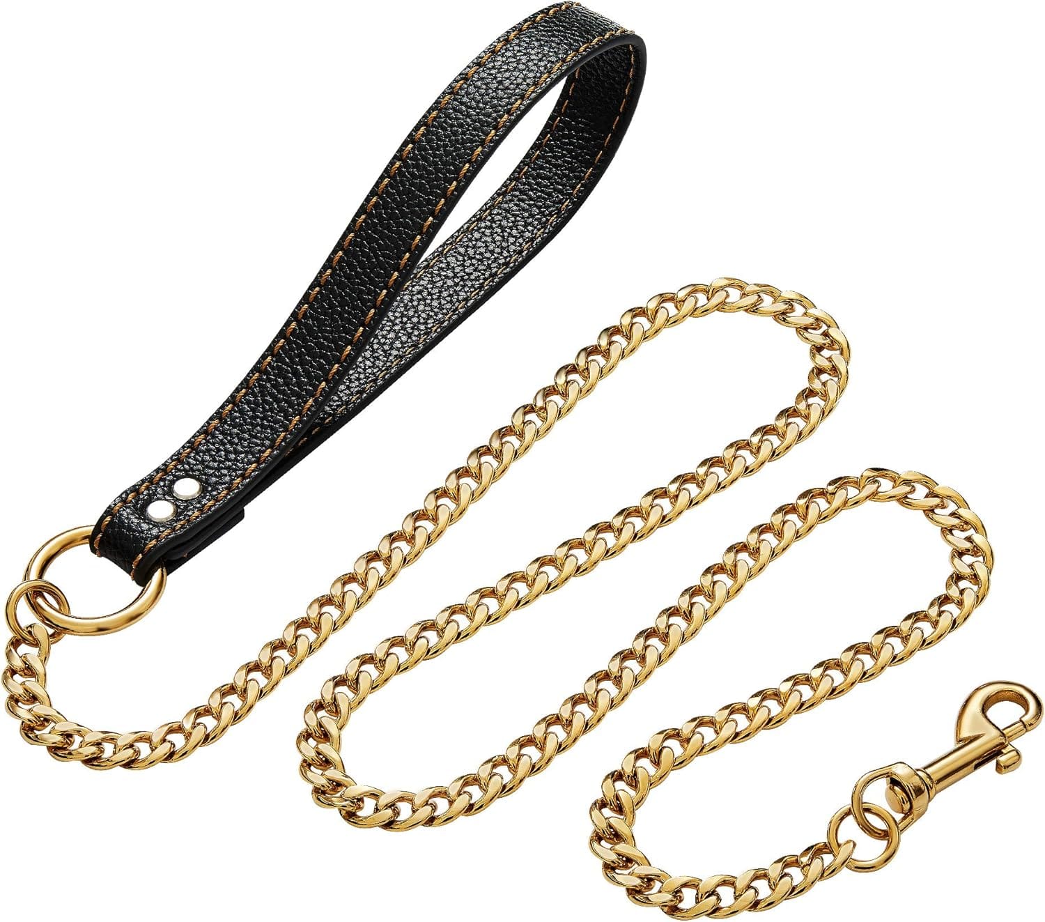 - 【Ultra Strong Dog Leash 】:Made of stainless steel ,18k gold Plated gold dog leash, fits for cuban link gold dog collar, french bulldog, english bulldog, doberman, husky, labrador retriever, german shepherd, golden retriever, beagle and so on