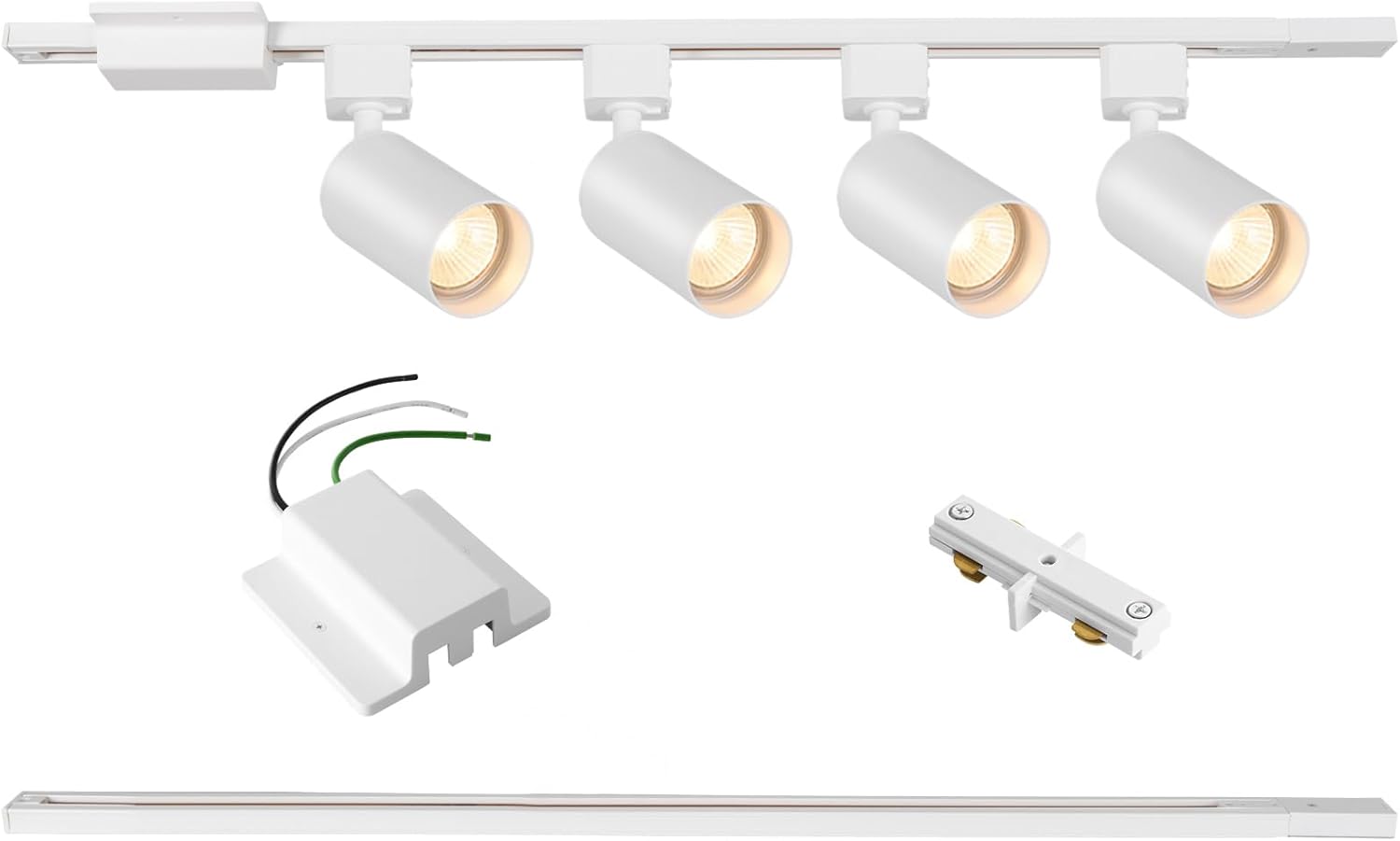 4-Light LED Track Lighting Kit with 3.3FT H Track Lighting Rails & Floating Canopy Connector, GU10 Track Light Kit, Modern Kitchen Track Lighting Fixtures Ceiling Spot Light, White (No Bulbs)