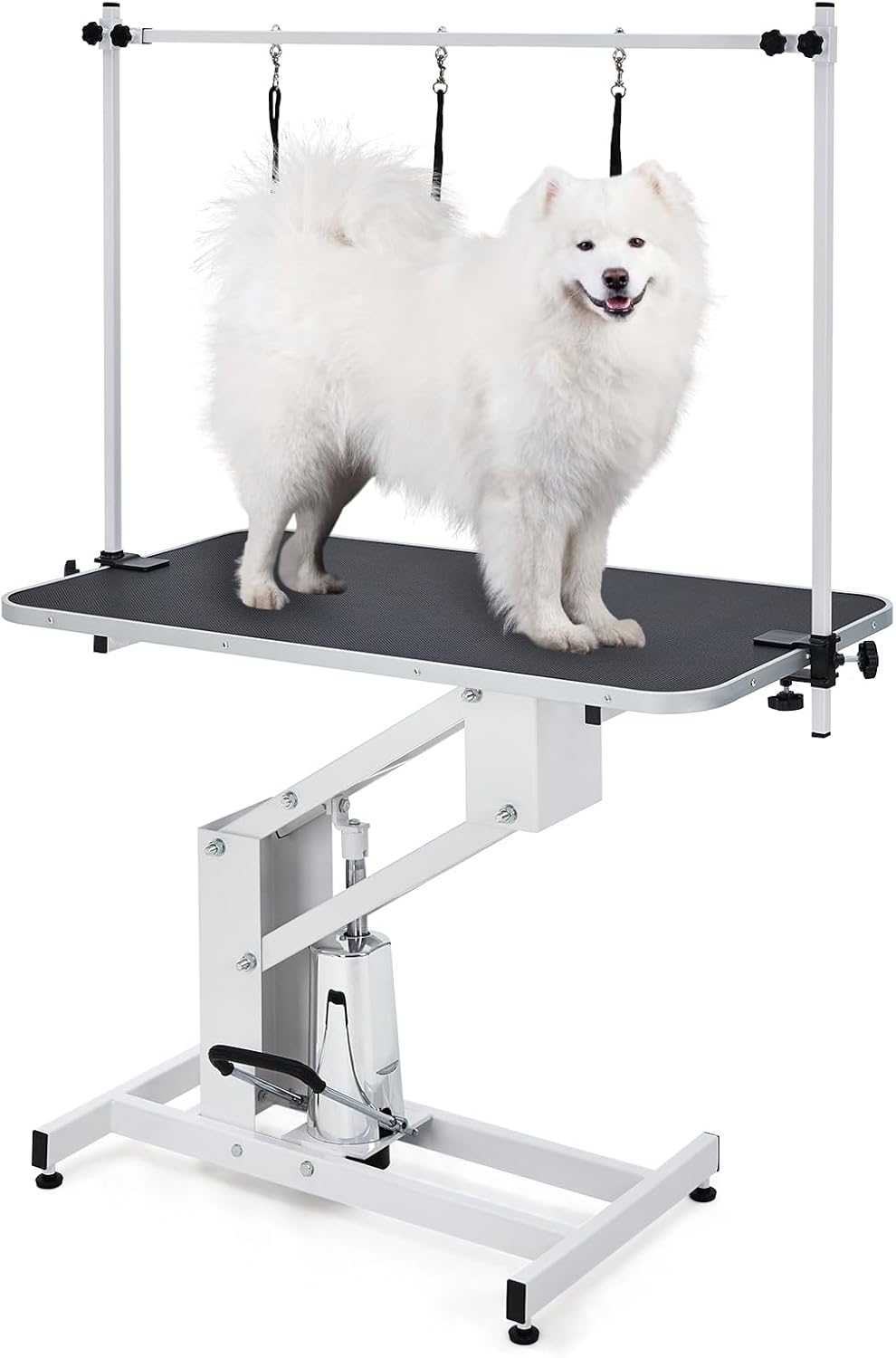 43″ Hydraulic Dog Grooming Table, Adjustable Overhead Arm & Noose, Non-Slip PVC Top for Large Dogs, Salon-Grade Pet Grooming Station,Max Weight Capacity 350 Lbs