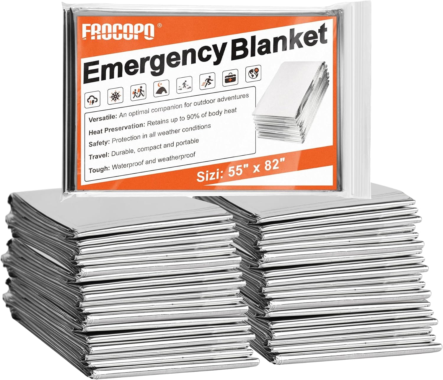 - Compact and Convenient: Each Frocopo Space Blanket measures 55 inch x 82 inch, weighs only about 2 ounces, and is individually folded to the size of a credit card. Easy to carry wherever you go, fitting seamlessly into your backpack or pocket.