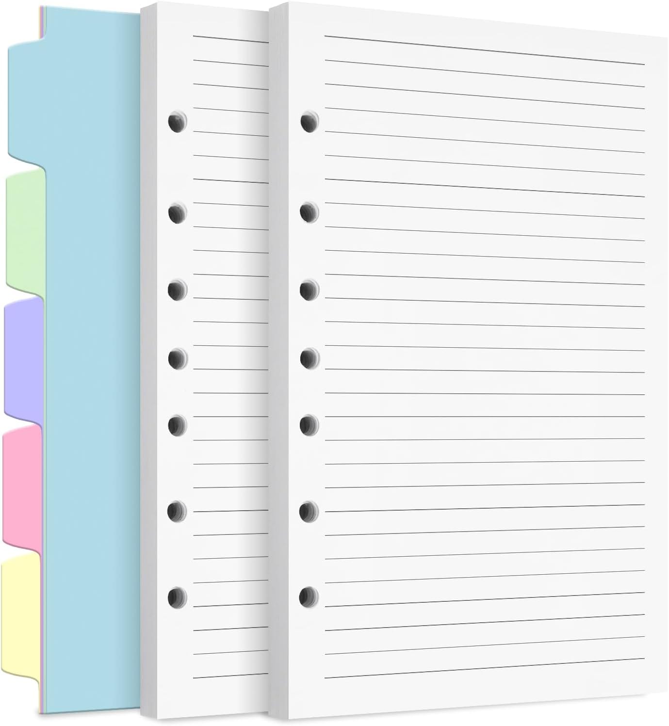 A5 Refill Paper, 7-Hole Planner Inserts for A5 Binder Budget Planner Journals Notebook, Loose Leaf Lined Paper with Binder Dividers, 240 Pages 5-1/2″ x 8-1/2″, White