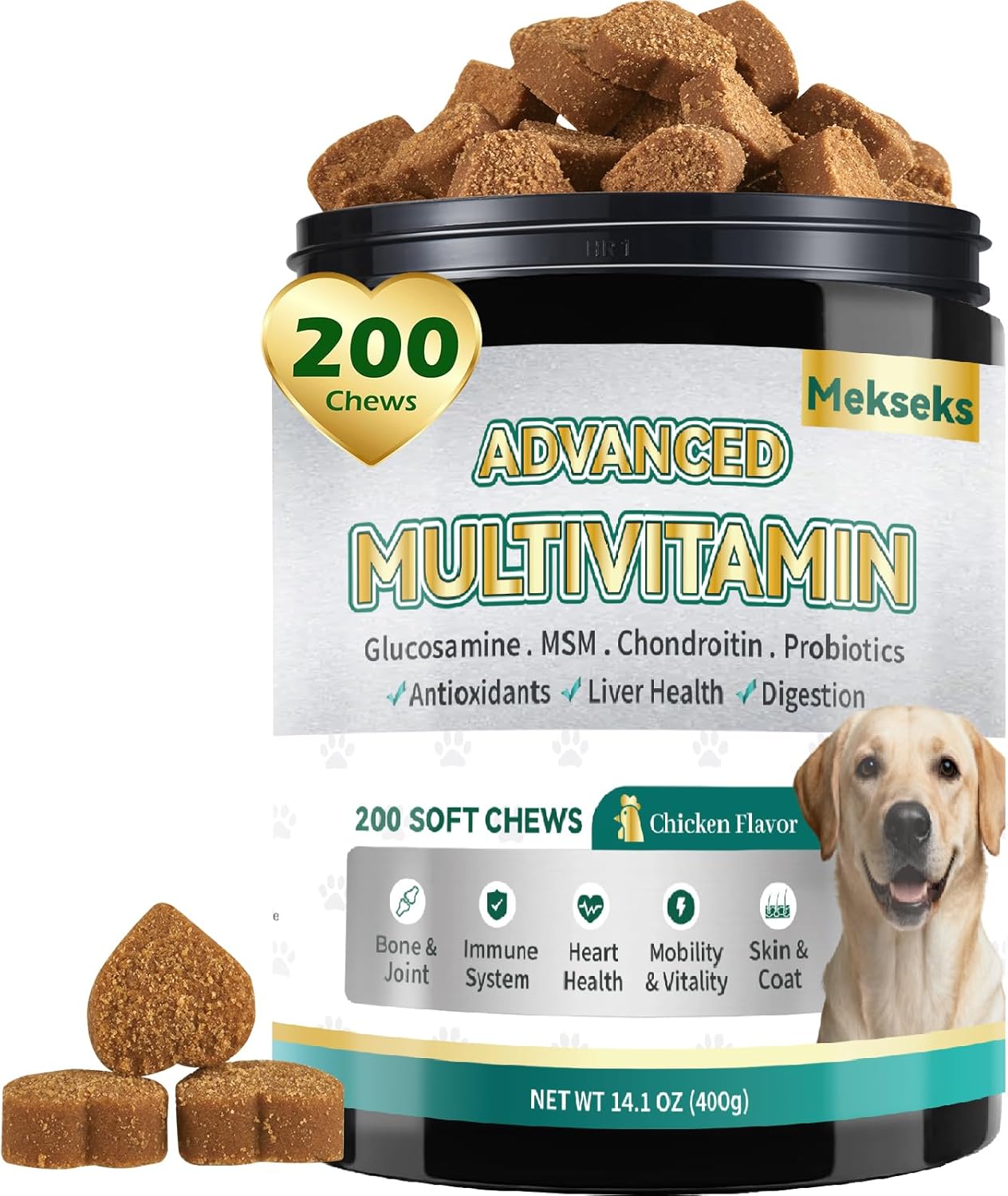 - 5. [Natural Ingredients, High Palatability and Delicious Taste, Easy Feeding]: Made with whole egg powder and chicken flavors, featuring a soft texture and exceptional palatability like treats. Free from artificial additives, this economical 200-count large-capacity pack is suitable as a daily nutritional supplement for dogs of all ages, breeds, and sizes. Especially recommended for dogs with limited dietary variety.
