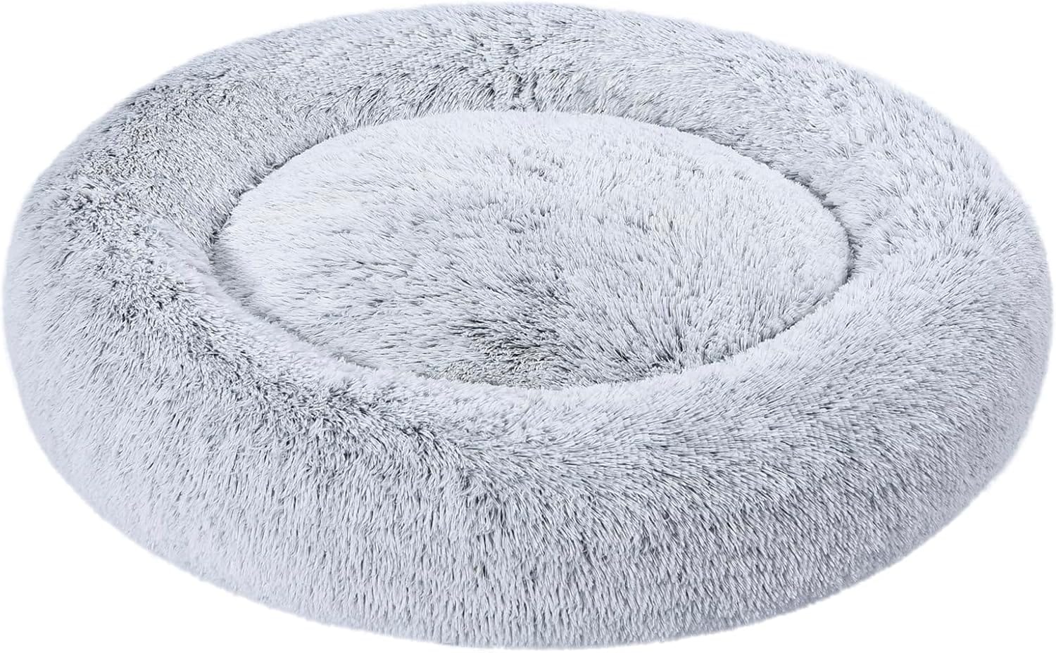 - Donut-style pet bed made of durable material with ultra-soft faux fur exterior and plush bolster rim for cozy warmth and comfort