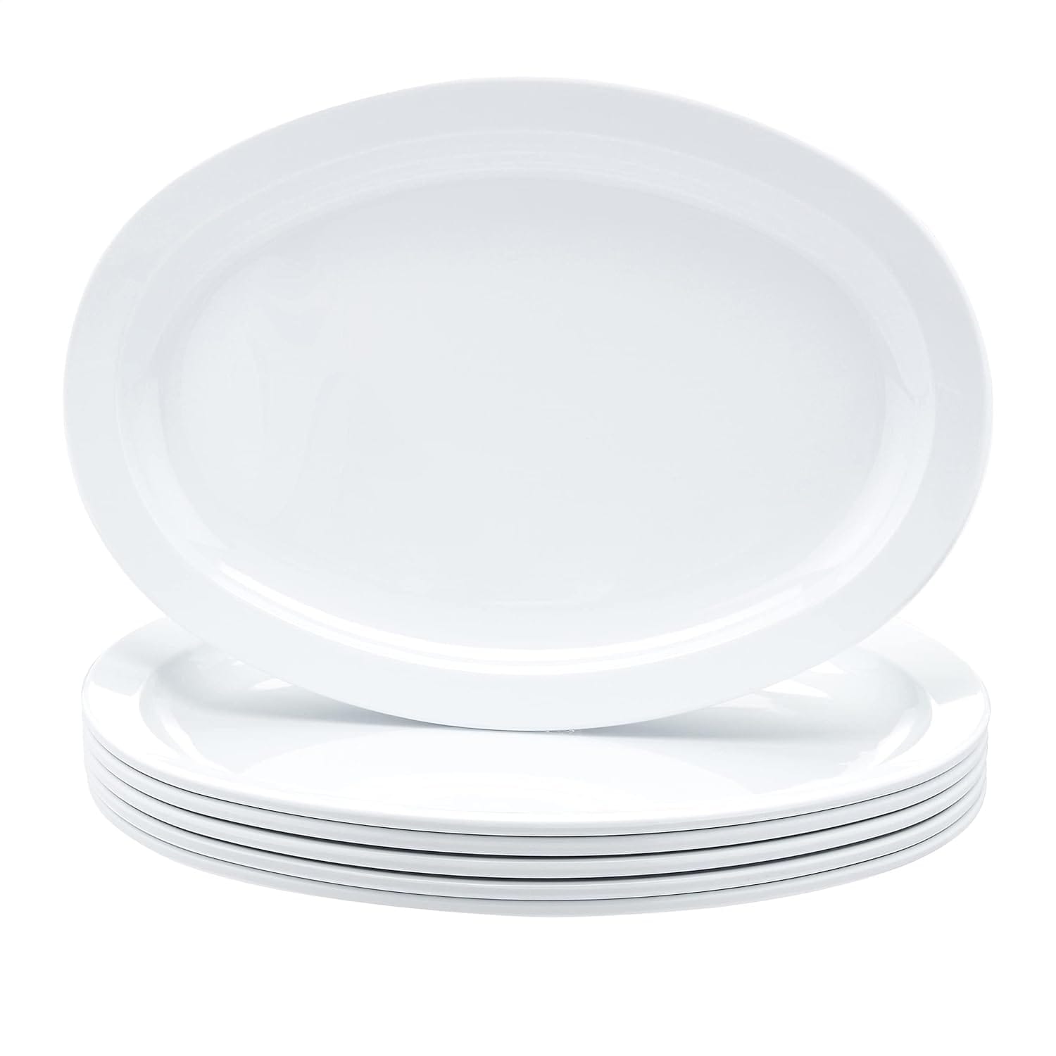 Amazon Basics Melamine (Plastic )Oval Platter Narrow Rim, 6 Piece Set, 13 in x 9.75 in, White