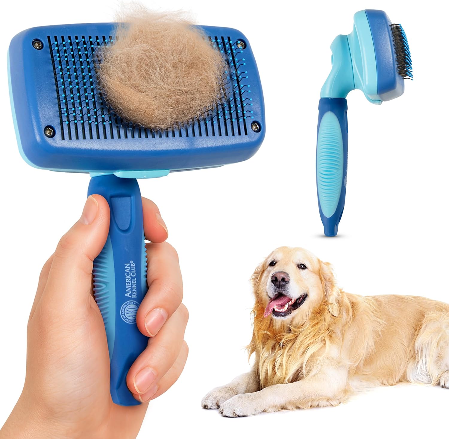 American Kennel Club-Self-Cleaning Slicker Brush for Dogs & Cats |Pet Grooming Brush |Removes Loose Hair, Mats & Tangles | Gentle Deshedding Tool for All Coat Types | Skin Friendly & Easy-Clean Design