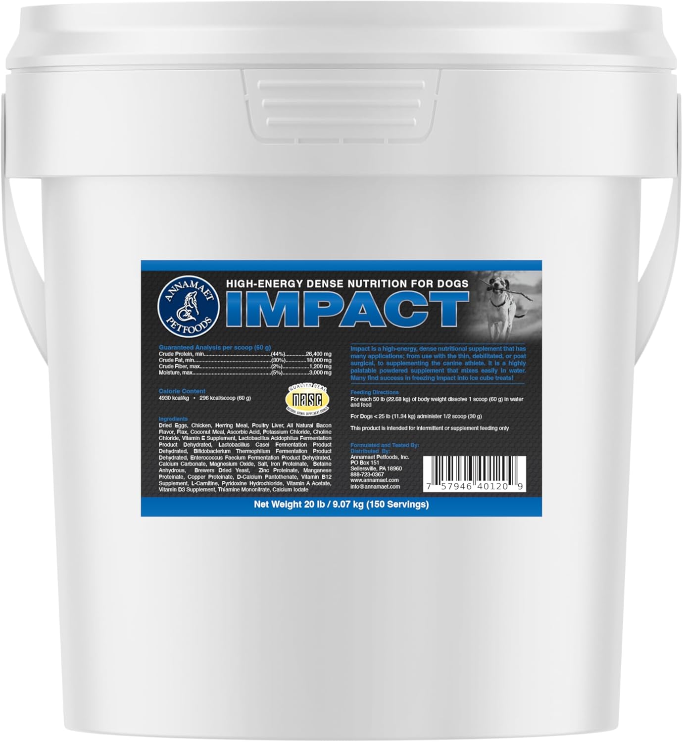 Annamaet Impact High-Energy Dense Nutrition Supplement for Dogs Helps Support Healthy Weight in Canine Athletes, Post-Surgical Dogs and Dogs with Fast Metabolism – 20 lb