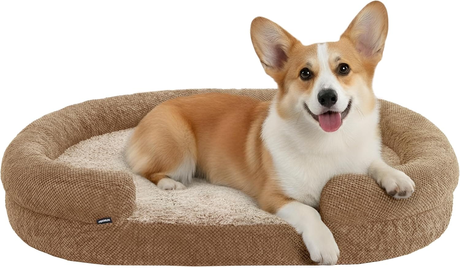 Anti-Anxiety Dog Bed for Medium Dogs, Cozy Round Egg Crate Foam Sofa with Washable Removable Cover & Bolstered Sides, Comfortable Pet Chair or Crate Bed,Camel (35″)