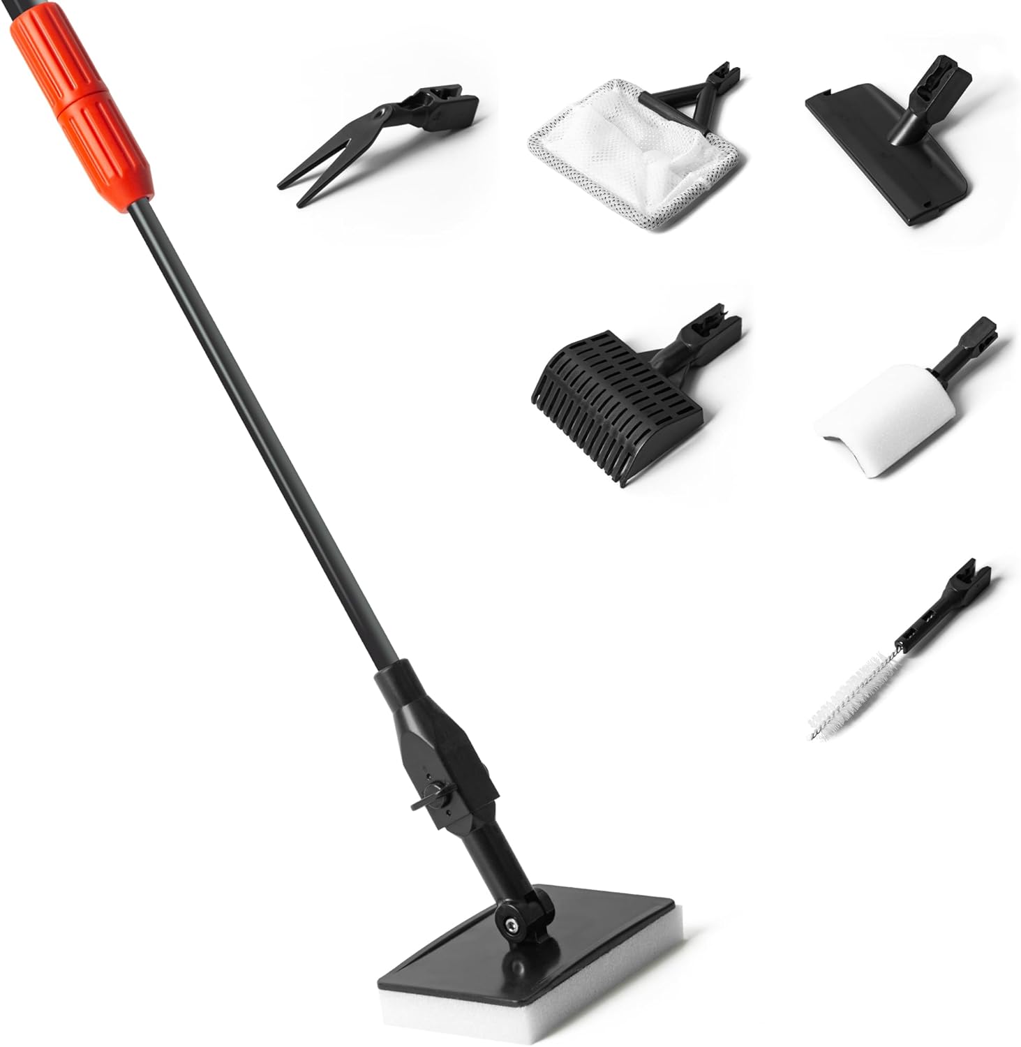Aquarium Glass Cleaner, 7 in 1 Algae Remover for Fish Tank, Aquarium Cleaning Kit with Long Handle, Aquarium Net, Algae Scraper, Sponge Brush