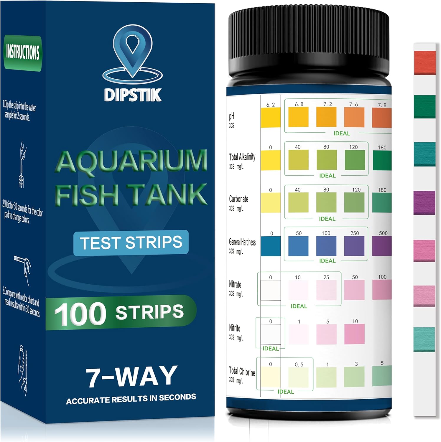 - Aquarium Test Strips for Freshwater Fish : 7 in 1 Fish Tank Water Testing Kit for Aquarium Pond,Fast & Accurate Testing Nitrate ,Nitrite, General Hardness, pH ,Carbonate, Total Alkalinity,Total Chlorine
