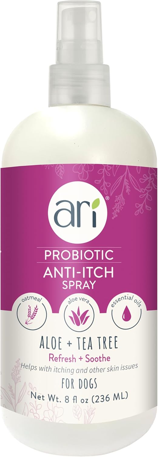 Ari Probiotic Anti-Itch Spray for Dogs (8 oz) Soothing Relief with Aloe & Tea Tree pH-Balanced, Natural Defense, Sulfate-Free, Gentle for All Dogs