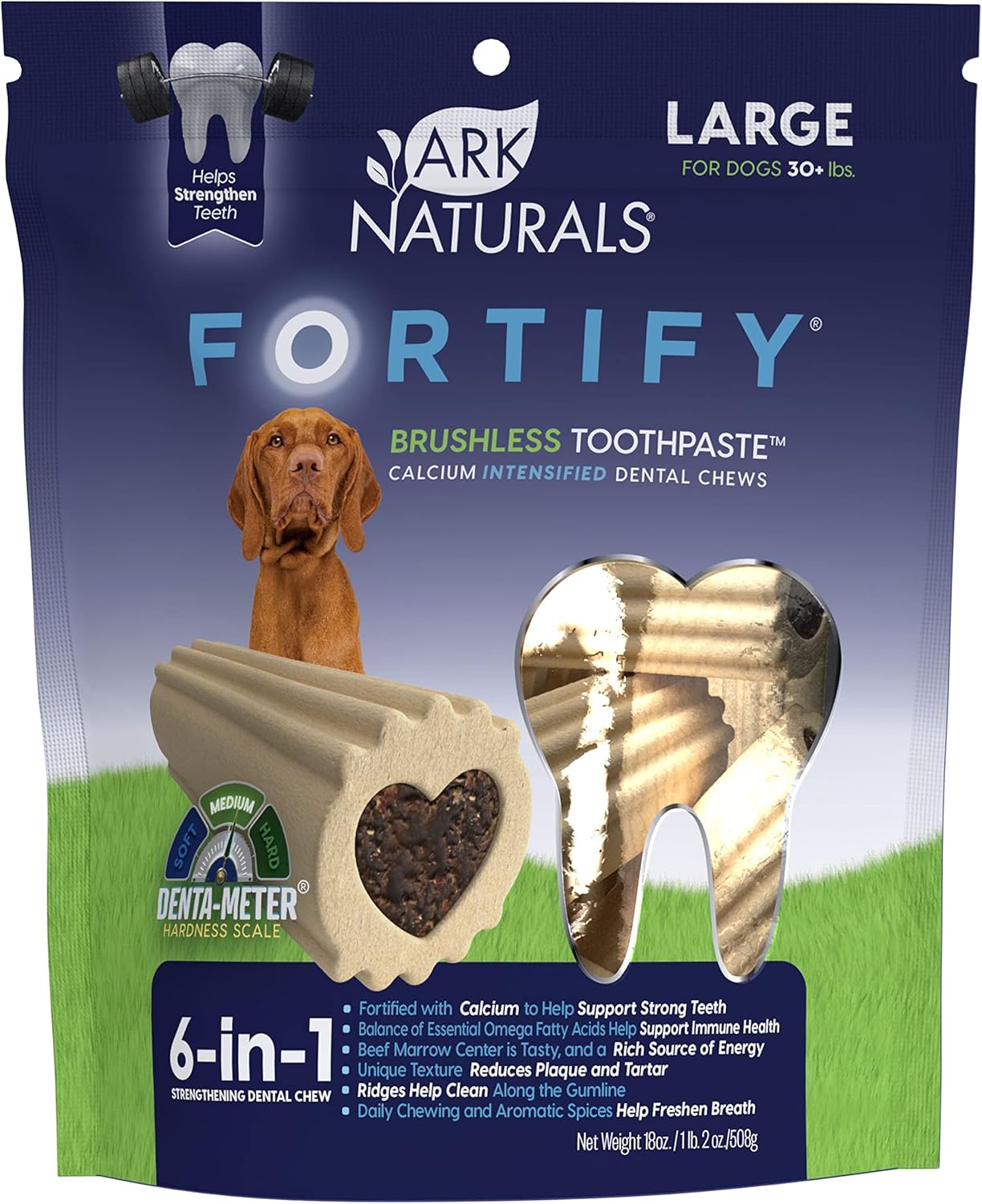 Ark Naturals Fortify Brushless Toothpaste Large Breeds, 18oz Bag Dog Dental Chew with Calcium, Omegas & Beef Marrow Center Support Strong Teeth and Freshen Breath with Dental Chews for Dogs