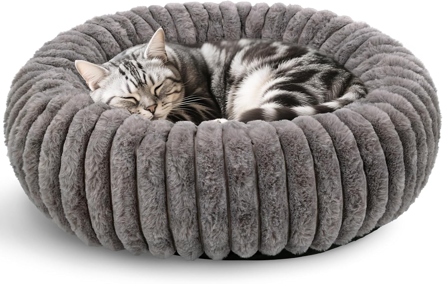 Arquiel Cat Bed for Indoor Cats, 20 inch Calming Cat Bed with Ultra Soft Plush, Machine Washable Round Anti-Anxiety Pet Bed for Kittens & Small Dogs, Grey