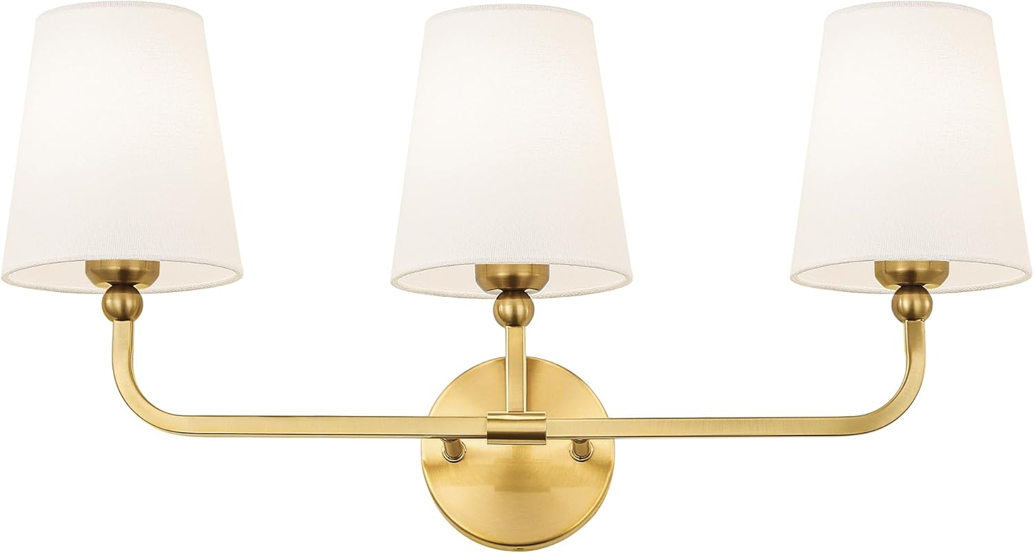 Be the first to review “Bathroom Light Fixtures, Brushed Gold Vanity Lights with Flared White Fabric Shade, 3 Light Wall Sconce, Modern Sconces Wall Lighting for Hallway Bedroom, VL837-BG-3”