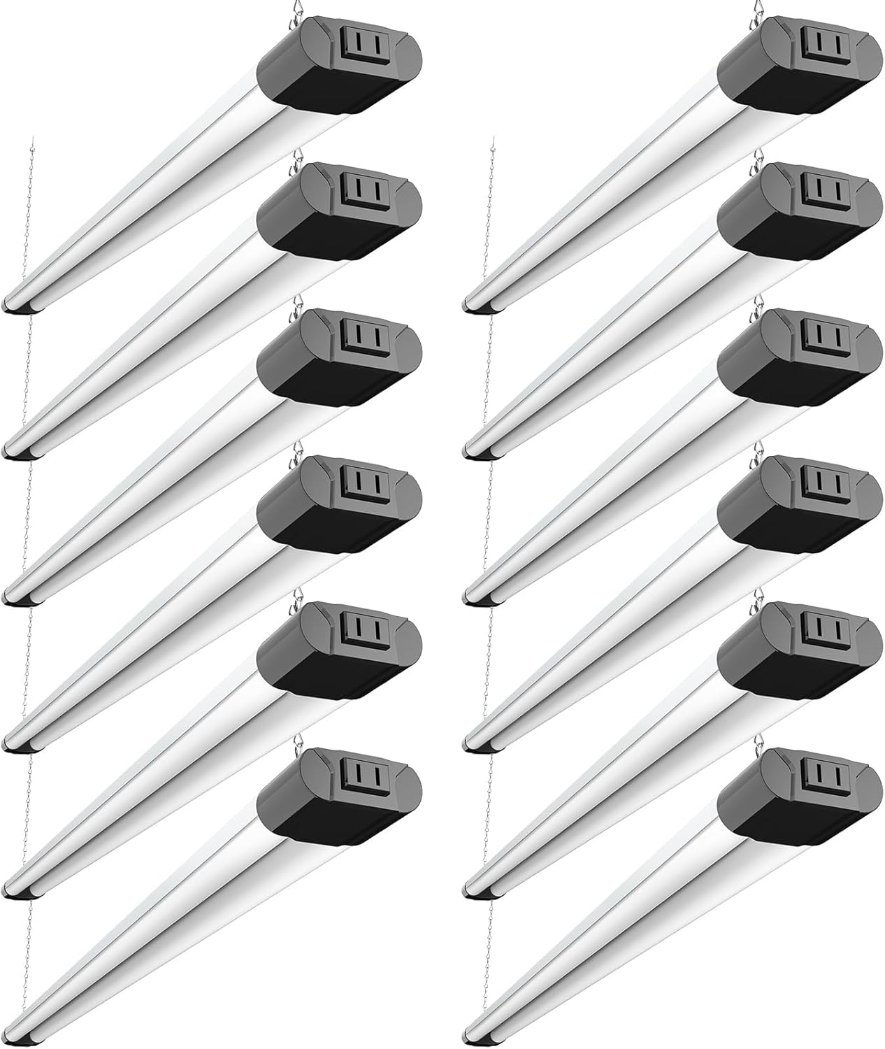 BBOUNDER 12 Pack Linkable LED Shop Light with Reflector, Super Bright 6500K Cool Daylight, 4400 LM, 4 FT, 48 Inch Integrated Fixture for Garage, 40W Equivalent 250W, Surface & Suspension Mount, Black