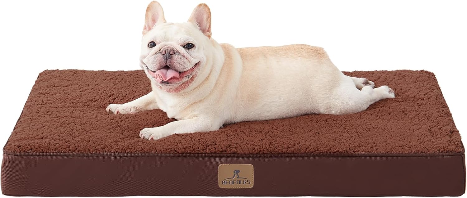 Bedfolks Orthopedic Dog Bed for Large Dogs – Egg Foam Dog Crate Bed with Removable Waterproof Cover, Pet Bed Mat Suitable for Dogs and Pets Up to 65 lbs (36 x 27 x 3 inches, Brown)