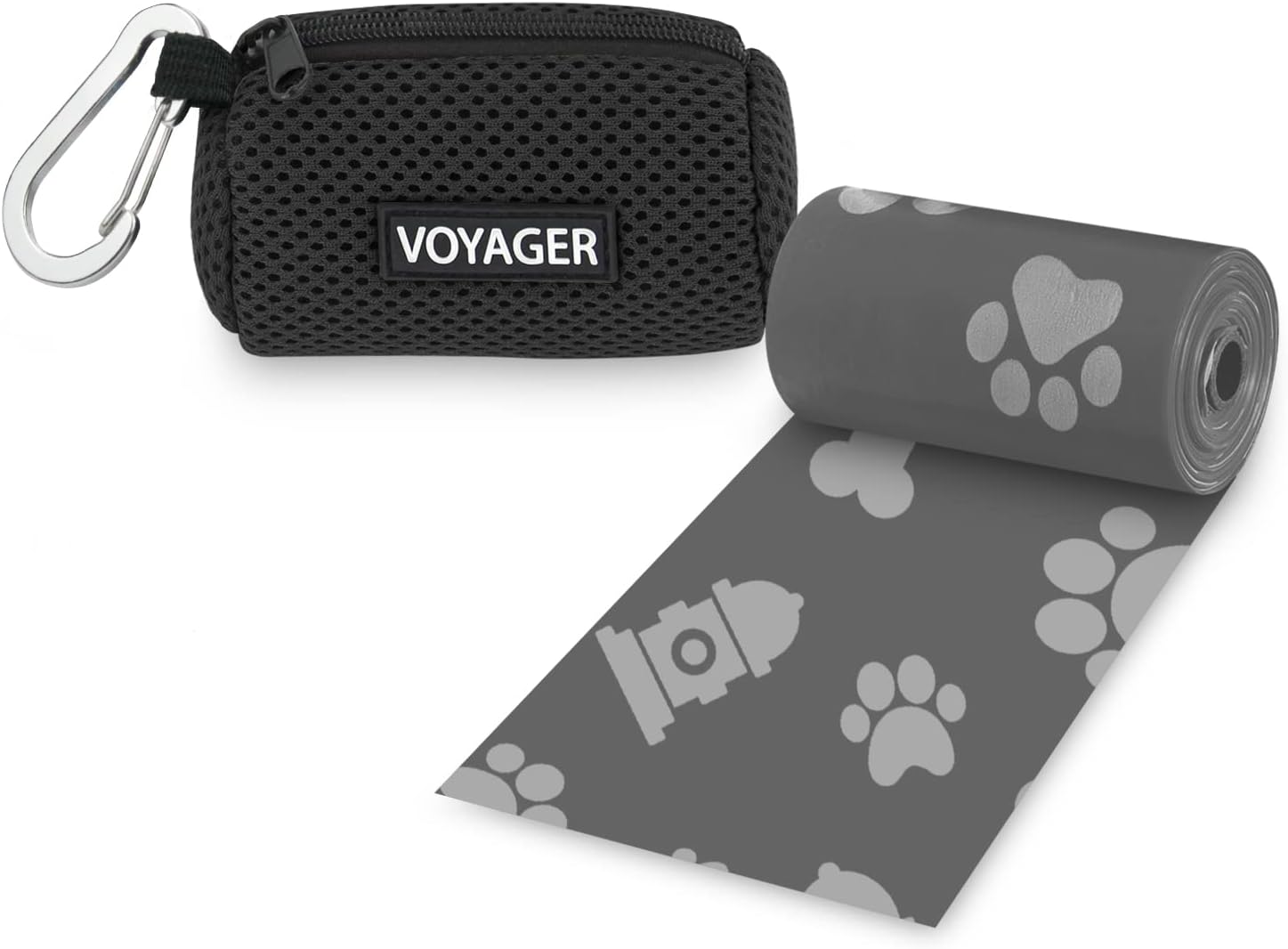 Best Pet Supplies Dog Poop Bag Holder Leash Attachment with 15 Bags, Black, Reusable Mesh Dispenser Pouch for Travel, Walking, Park, and Outdoor Use, Soft and Durable with Clip-On