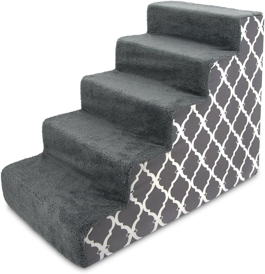 Best Pet Supplies Dog Stairs & Steps – Foam Steps for Small Dogs & Cats, Non-Slip Indoor Balanced Pet Step Support, Dog Ramp, No Assembly, Gray Lattice Print, 5-Step