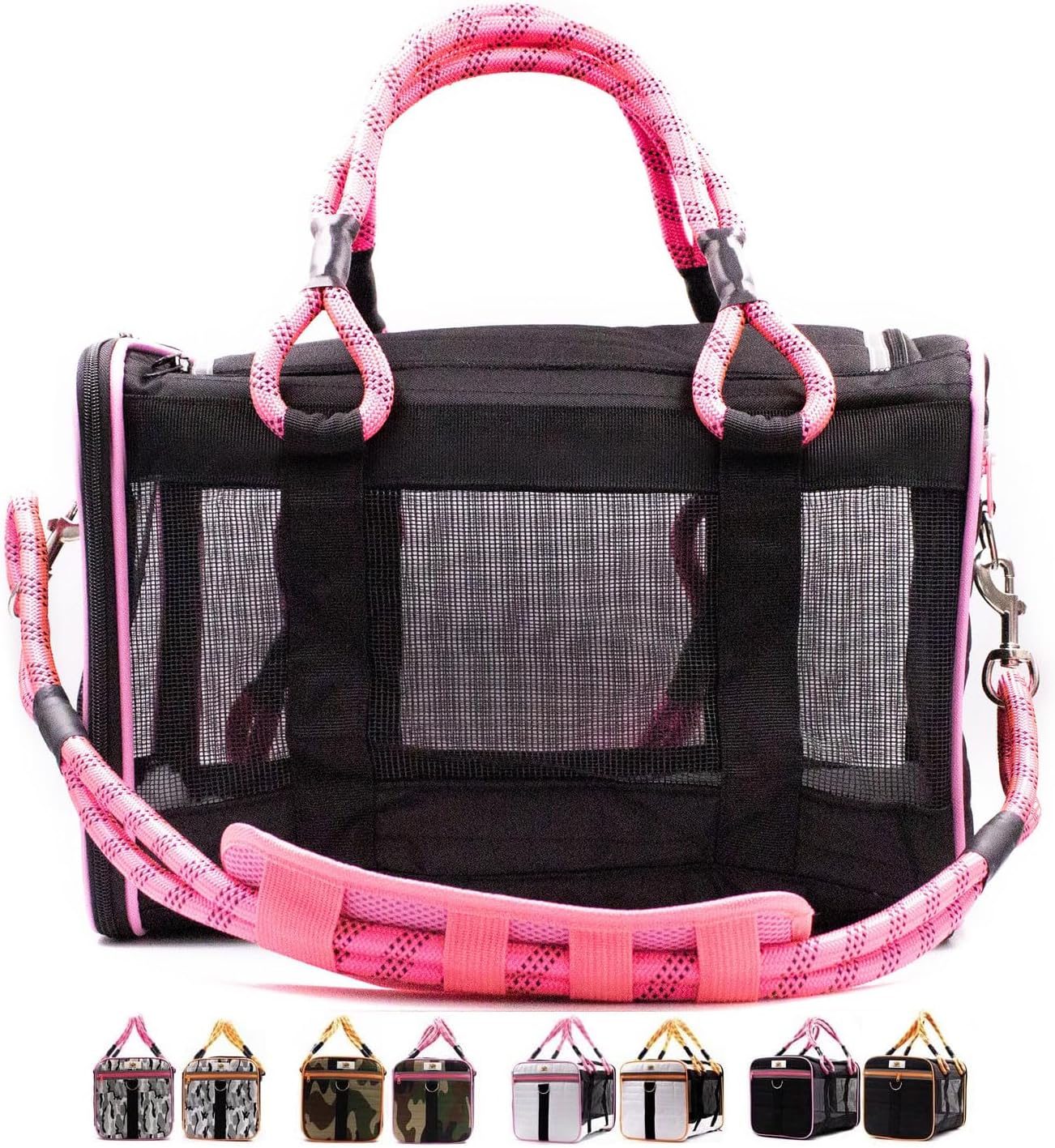 Buddy’s Best Airline Approved Pet Carrier Black & Pink Heavy Duty, Fits Under Seat, TSA Compliant, Ventilated Mesh Design w/Waterproof Base & Reflective Safety Strips