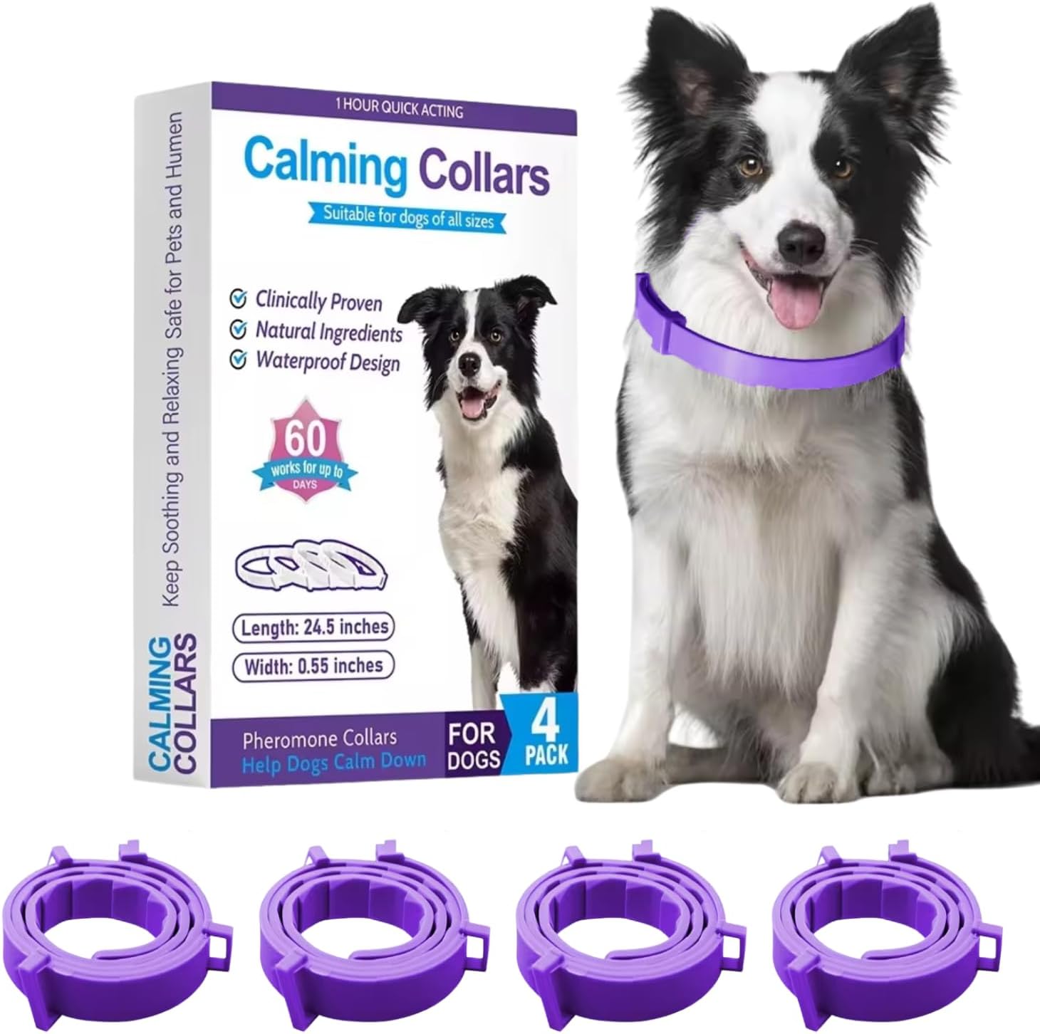 Calming Collar for Dogs 4 Packs Dog Pheromone Collars Relief Anxiety Stress Separation and Bad Behavior Pheromones Calm Lasts 60 Days 25 Inches Size Adjustable Waterproof Fit Small Large Medium Dogs