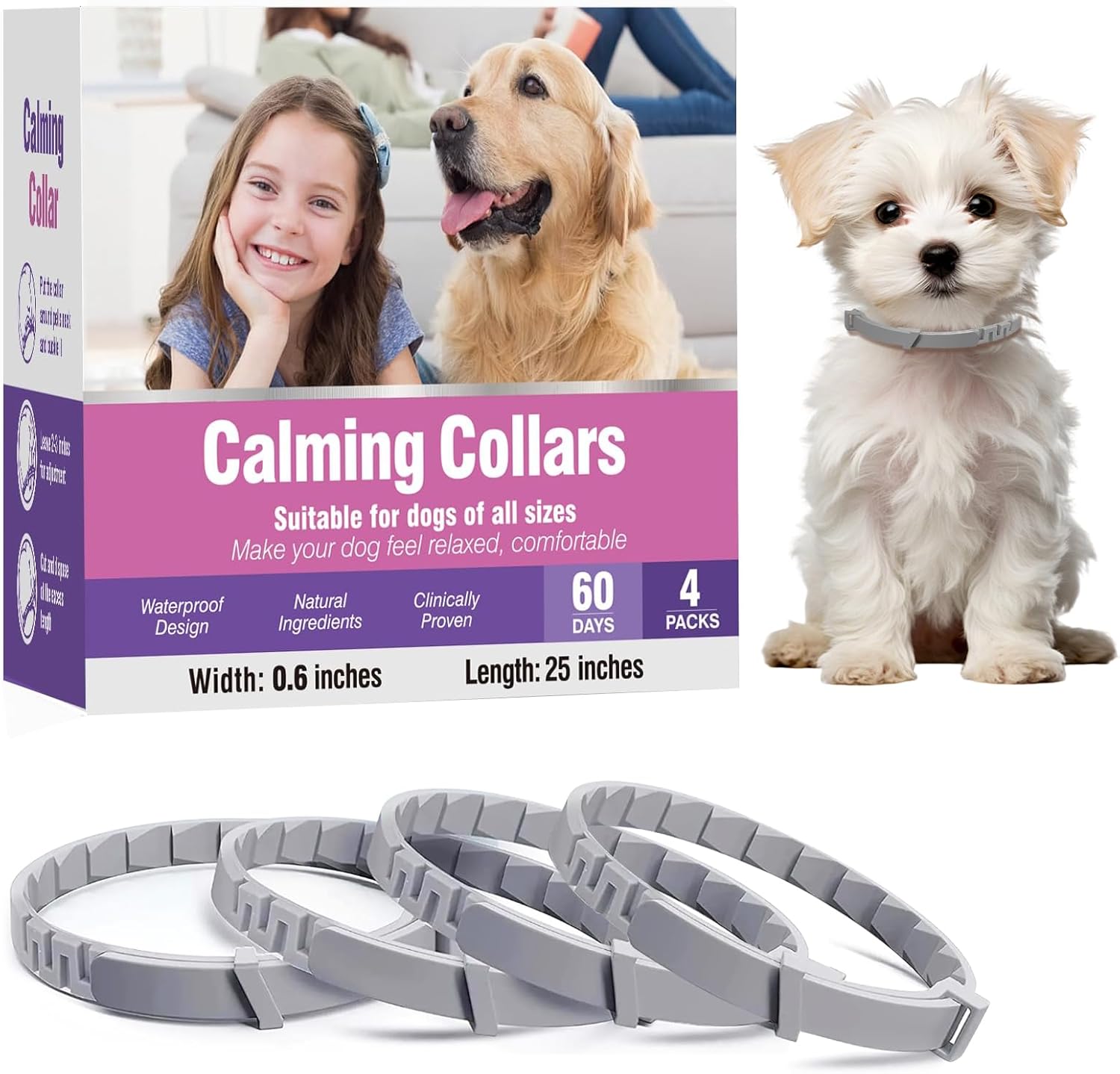- [High Cost Performance of calming collars for dogs] Calming collar for dogs 4-pack all in one delicate box. Each pheromone collar for dogs is Individually packaged for easy use and storage, calming collar for dogs provides dogs with a longer release of calming pheromones. Dog calming collars soothe children by mimicking the way mothers release pheromones. After wearing the calming collar for dogs anxiety and stress, dog calming collar will relieve the dog’s tension, anxiety and fear