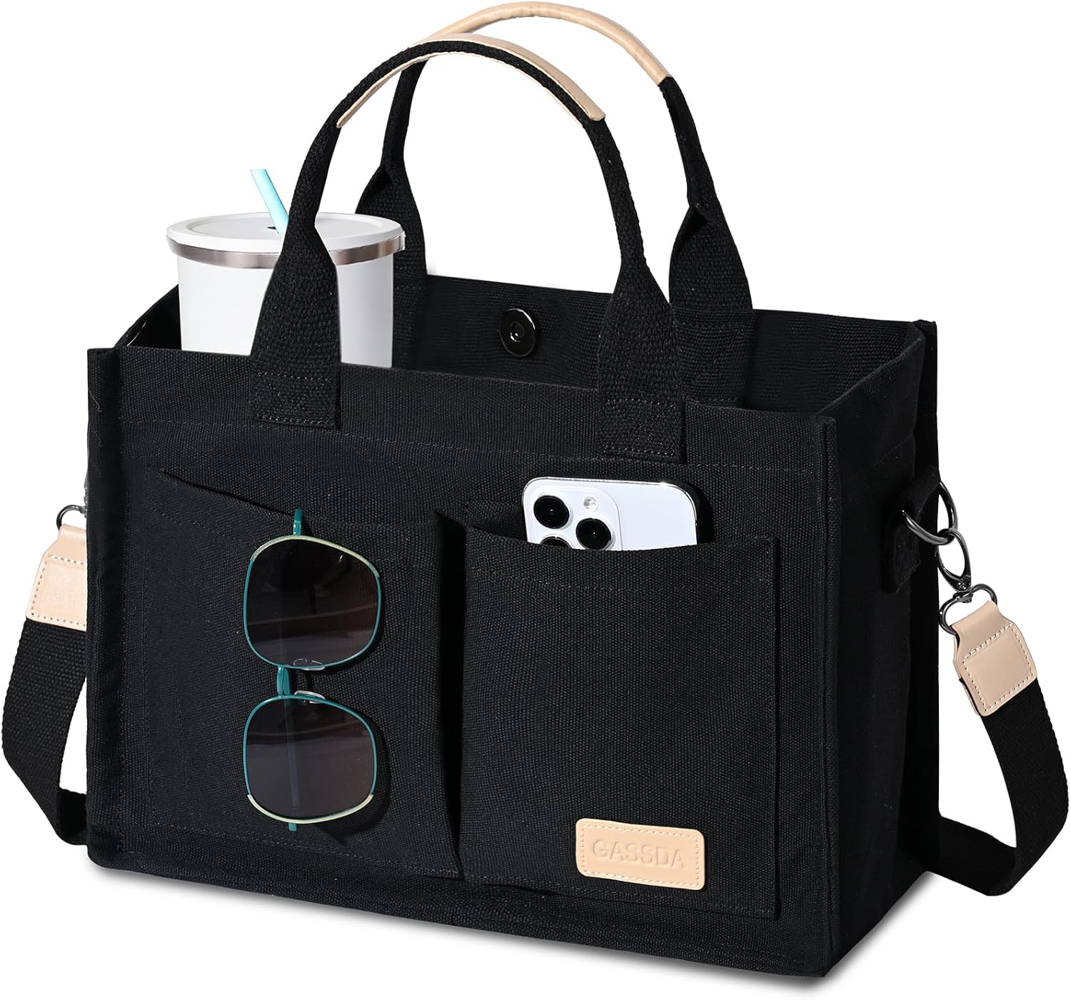 Canvas Tote Bag for Women Crossbody Work Purse with Pockets Top Handle Handbag Satchel Bags for Travel Nurse Teacher