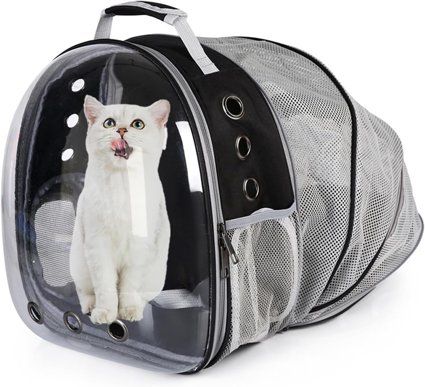 - Expandable Design Backpack: This cat backpack carrier with a expandable back panel can be easily expanded to large bubble tent bed, which will provide more space for your pets to stretch out, play and have a rest during traveling.