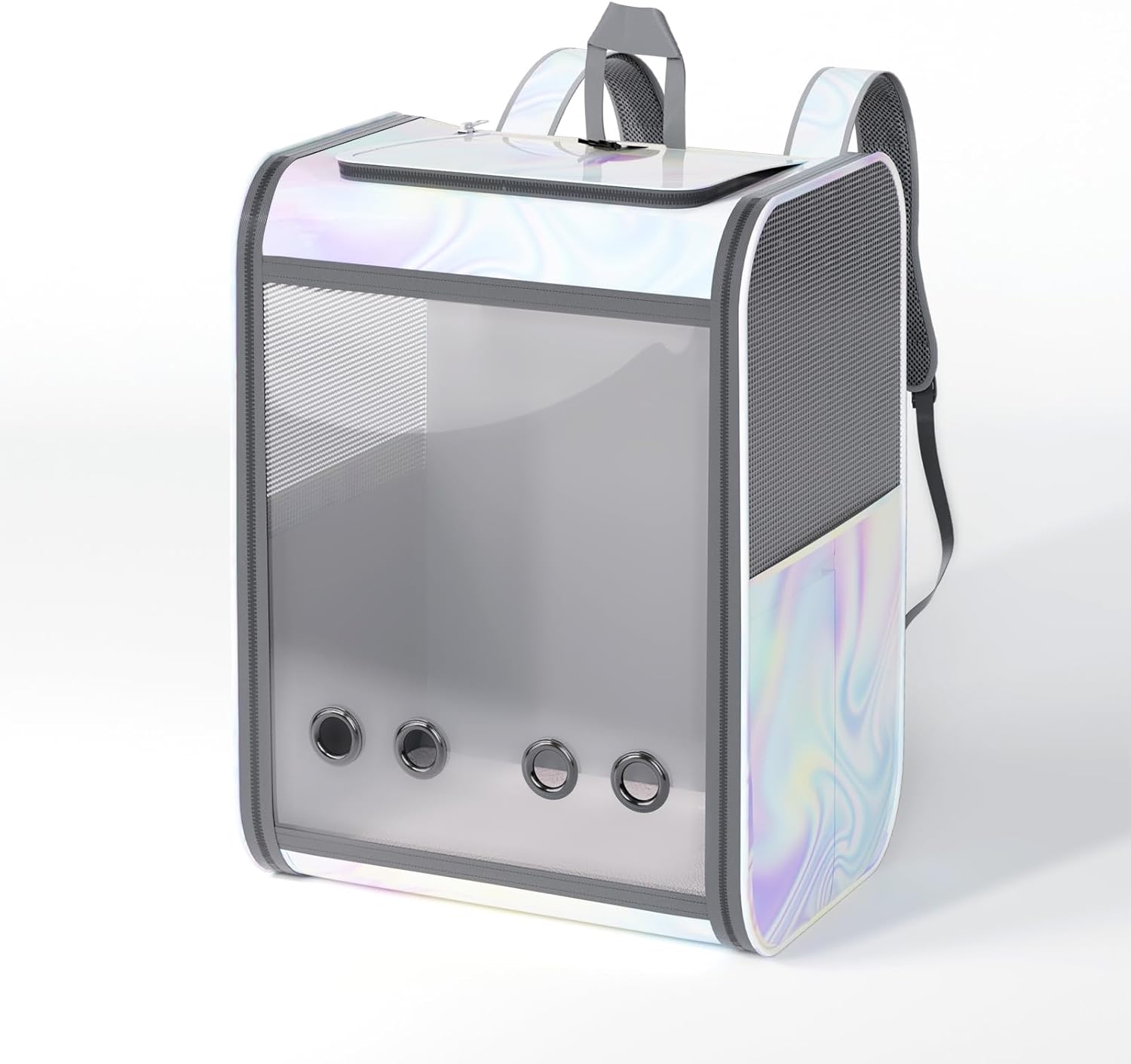 - 【Large Ventilation Window+Large Field of View】 Cat carrier backpack with 4 Front Ventilation hole and 1 top and large sheer mesh windows on both sides, give your pet more space to rest and increase air circulation.front of the backpack are made of PET transparent material, and three large viewing windows allow pets to enjoy the scenery outside with you, no longer alone,top blackout curtain can be pulled down, which can not only block the sun, but also protect your pet from anxiety.