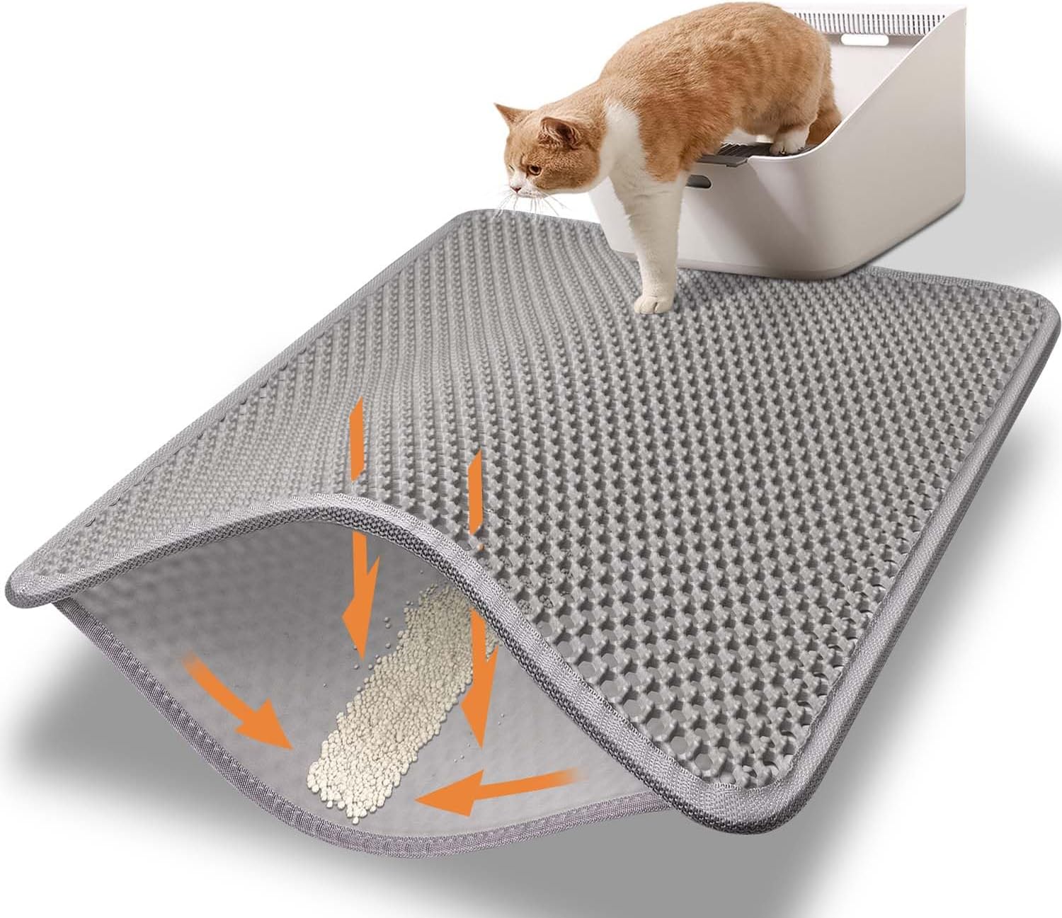 Cat Litter Mat-Litter Box Mat for Kitty, EVA Honeycomb Double Layer Design, Urine & Waterproof Scatter Control, Less Waste, Easier To Clean,Non Slip, Gray
