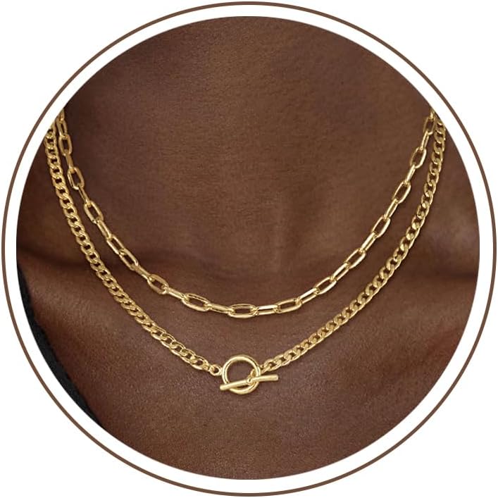 CHESKY Layered Necklaces for Women, 14K Gold Plated Chain Necklace Women Trendy Cuban Link Paperclip Chain Toggle Clasp Necklace Fashion Chunky Jewelry for Women