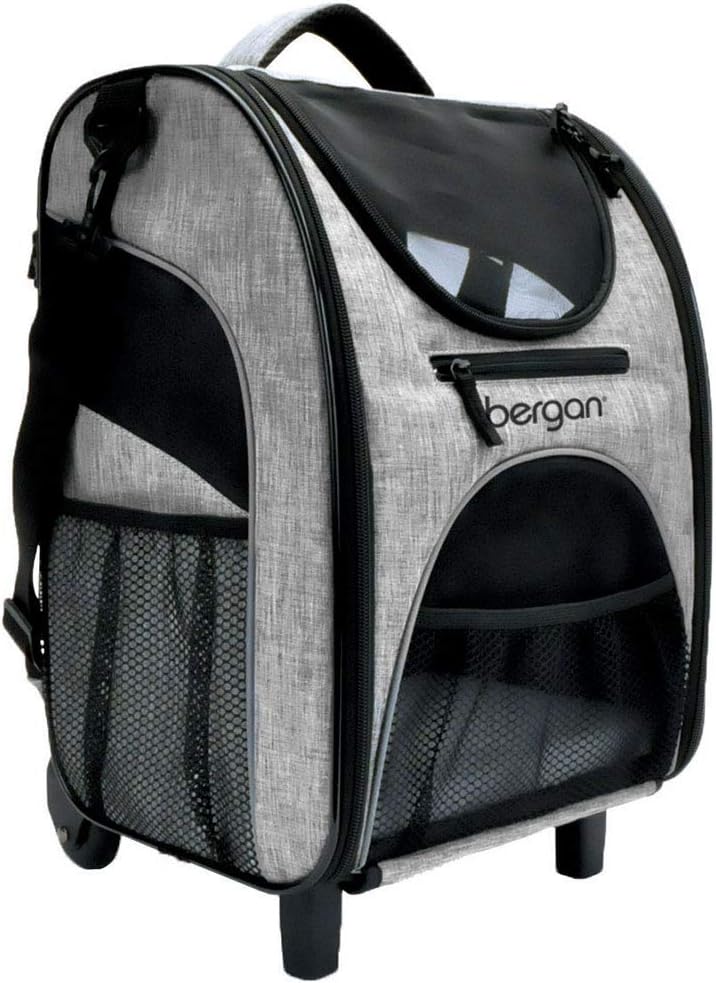 - Rolling Pet Carrier: This travel bag has an extendable handle for easy pulling and a shoulder strap for carrying