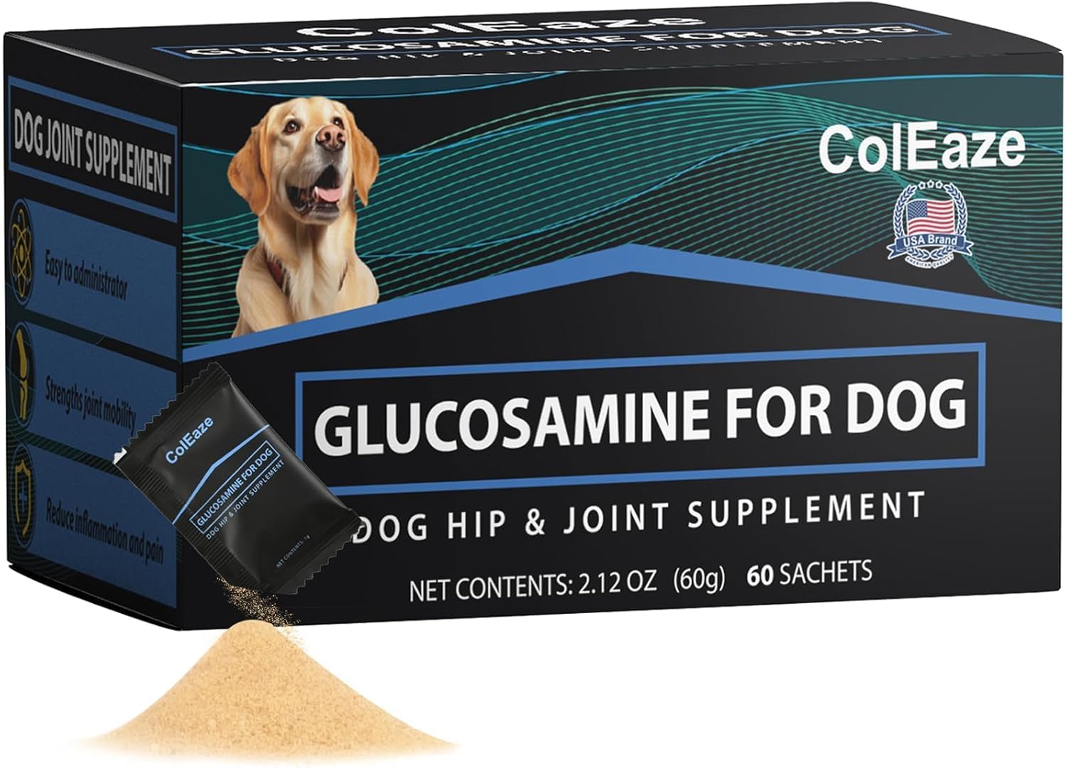 ColEaze Glucosamine for Dogs – Dog Joint Supplement Powder, MSM & Turmeric – Joint Pain Relief, Mobility Support for All Ages & Breeds – 60 Ct. Box