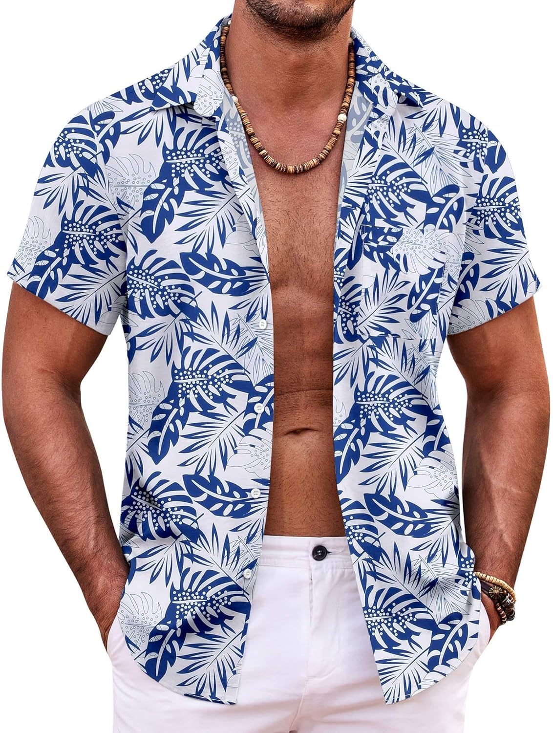 COOFANDY Mens Hawaiian Shirt Short Sleeve Button Down Shirts Tropical Summer Beach Shirts Casual Floral Aloha Shirts