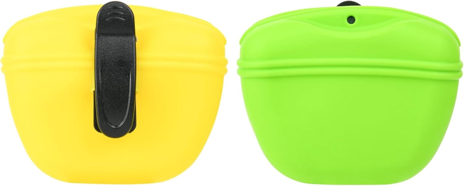 - 【Package】Each pack comes with 2 pcs silicone dog treat training pouches in Yellow and Green color. 2 pcs small pouch can holder different items as you like.