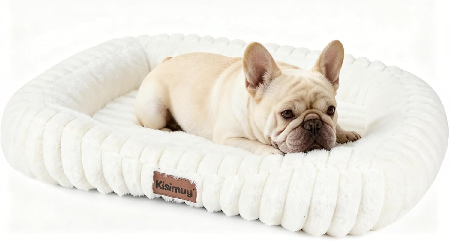- Stylish Comfort & Elegant Design: KISIMUY Calming Dog Bed is made of comfortable plush fabric, When your furry baby snuggle up on this bed, it feels as soft as kissing their own skin, ensuring they can enjoy a comfortable rest time. The dog bed combines the striped aesthetic feature with a perfect low-profile design, adding elegance to your home. It’s the ultimate blend of durability, softness, and modern elegance.
