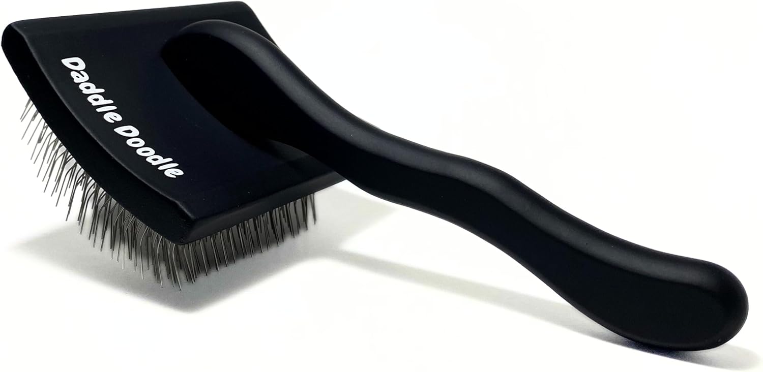 Daddle Doodle Dog Slicker Brush – Grooming Designed for All Poodles and Doodle Mixes Fluff, Style, Detangle, and Demat Ergonomic Handle Design Angled Brush Pins that are Safe and Effective