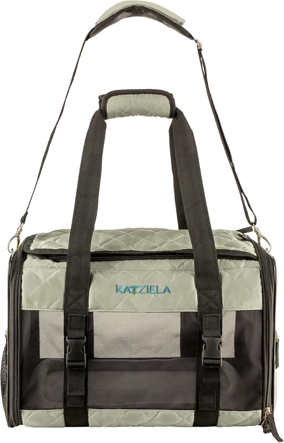 Deluxe Quilted Airline Approved Pet Dog & Cat Carrier for Airplane Travel – by Katziela (Large, Gray)