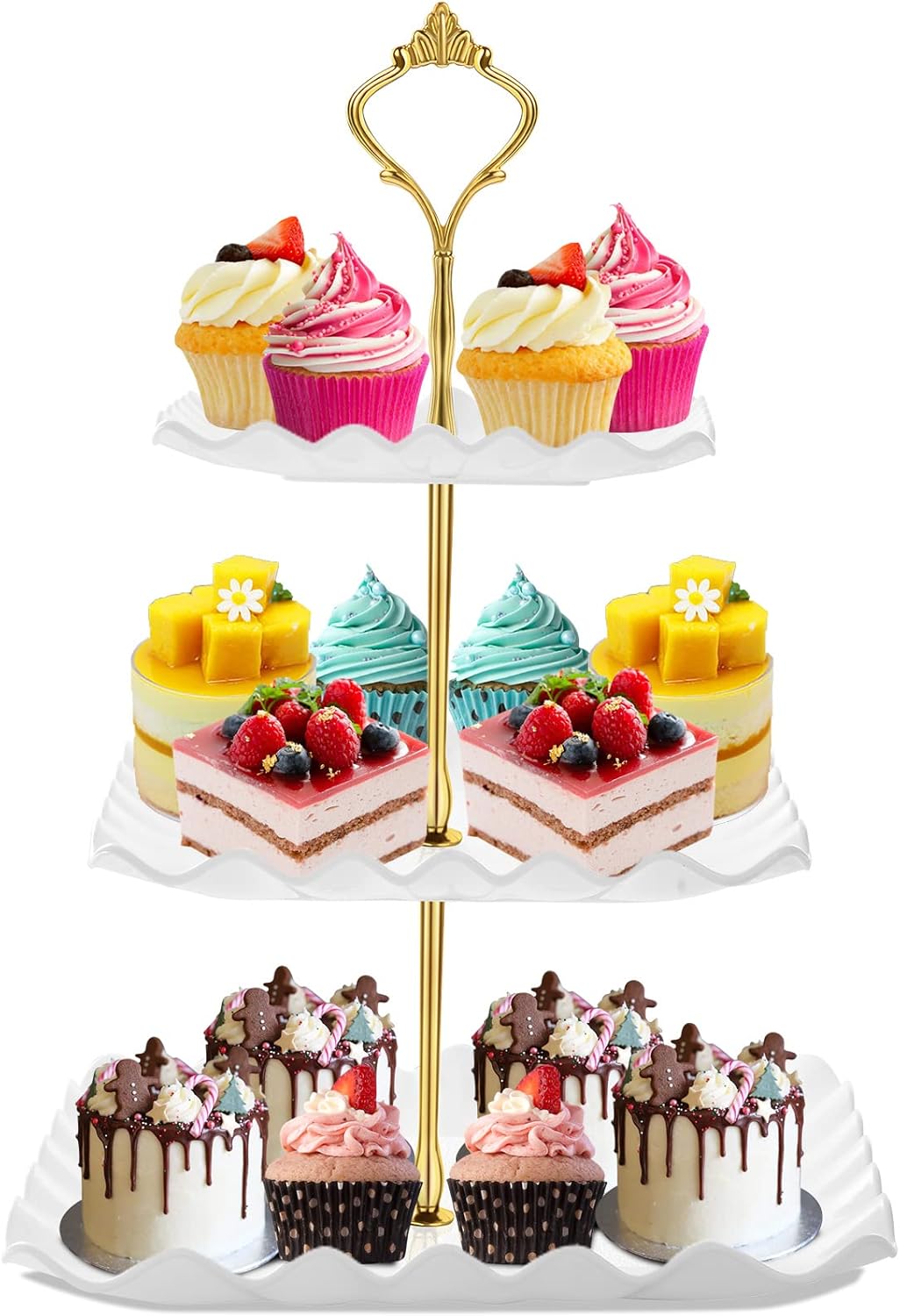 Dessert Cupcake Stand, 3 Tier Cup Cake Holder Tower for Tea Party/Birthday/Wedding, Plastic Tiered Serving Tray with Metal Rod, White