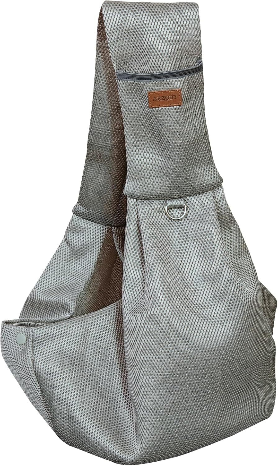 Dog Carrier Sling – Ultra Breathable Reversible Puppy Carrier Purse with Storage Pocket, Travel Safety Harness, Hand-Free Dog Sling Carrier for Carry Small Dogs and Cats, Dog and Cat Harness(Gray)