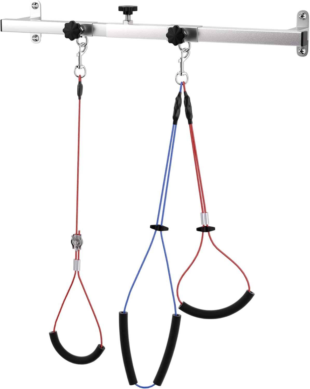 Dog Grooming Holder for Bathing – Wall-Mounted Adjustable Pet Grooming Arm with 2 Sliding Blocks, No Sit Haunch Holder & Steel Ropes,pet Grooming Tools (Adjustable: 4572cm (17.728.3″))