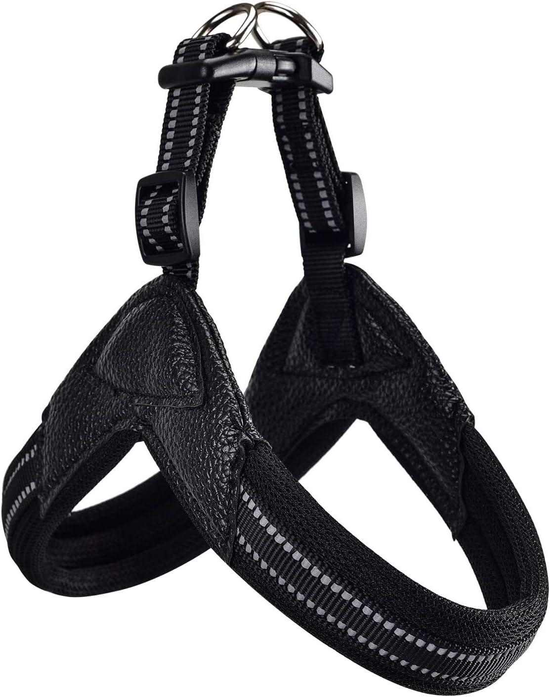 - 【Safety Function】Nylon ribbon, with 3M reflective material, high visibility at night, connected with 3M reflective Oxford Material ribbon is soft high-quality PU leather, dual quality protection, so that your dog wears this chest strap is noble and comfortable, whether walking or riding in the car is easy to wear seat belt.