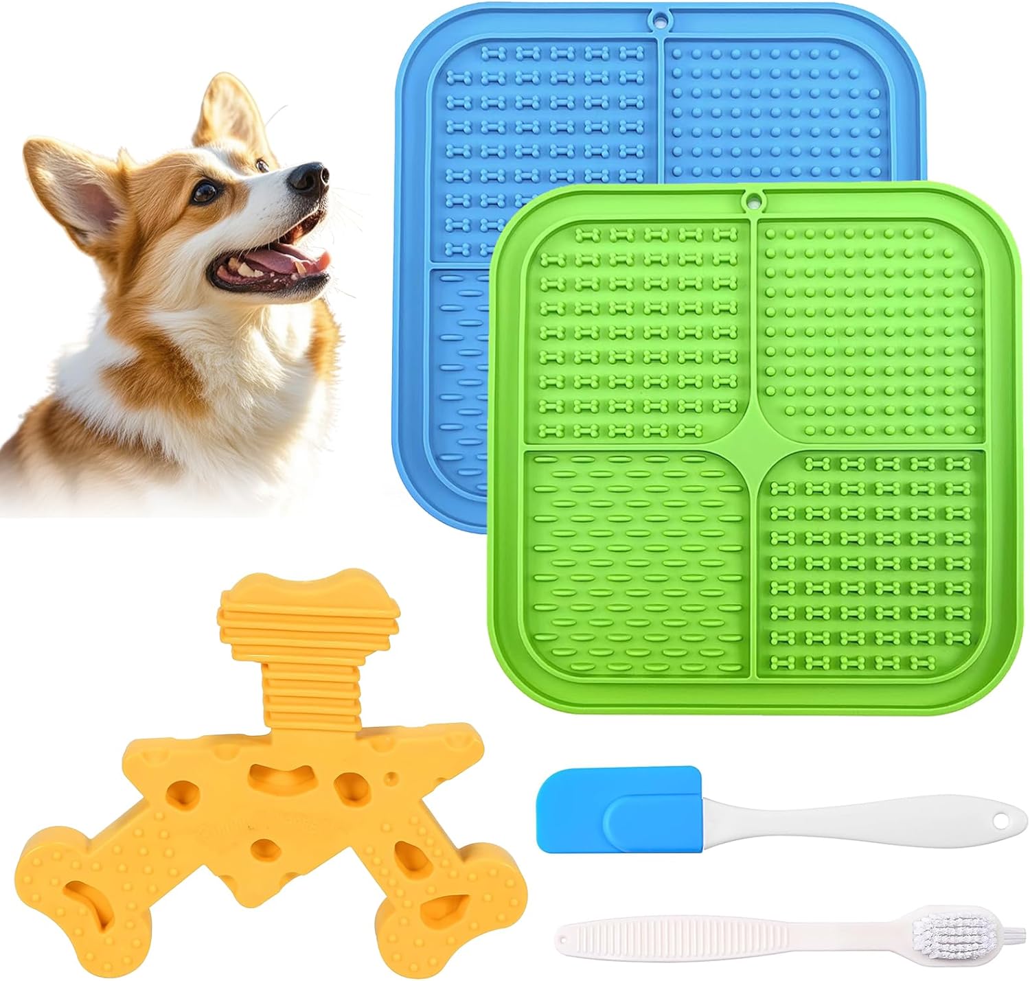 Dog Licking Mats (Silicone) & Cheese Flavored Dog Chew Toy (Nylon), Pets Dogy Pupyy Slow Feeder Kit for Butter Yogurt Peanut, Anxiety Relief Pet Supplies for Bathing Training