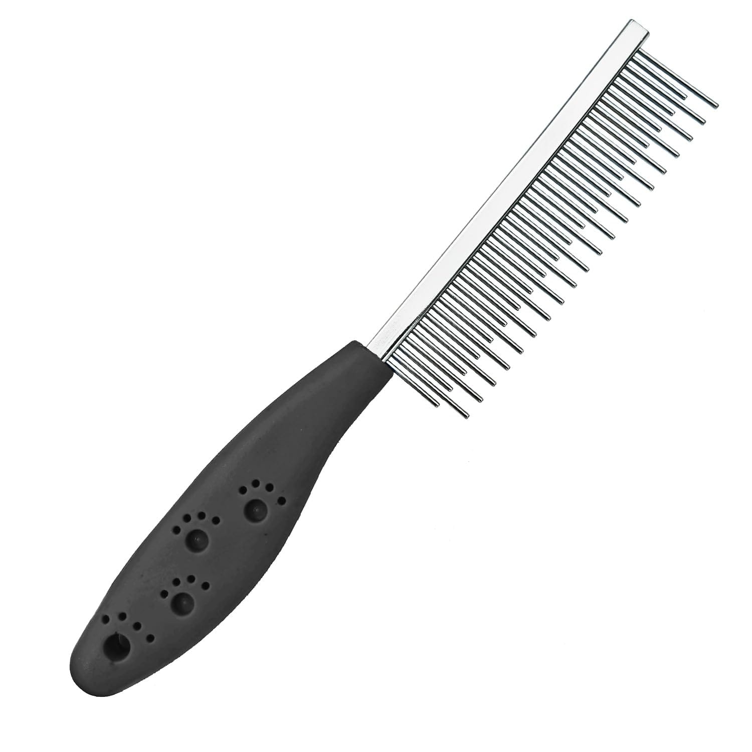 Dog or Cat Comb Grooming with Short and Long Teeth Dematting Knots Tangles Remover Combs Detangler Tool Suitable for Dogs Cats Poodle HorseStainless Steel Pin (Black)