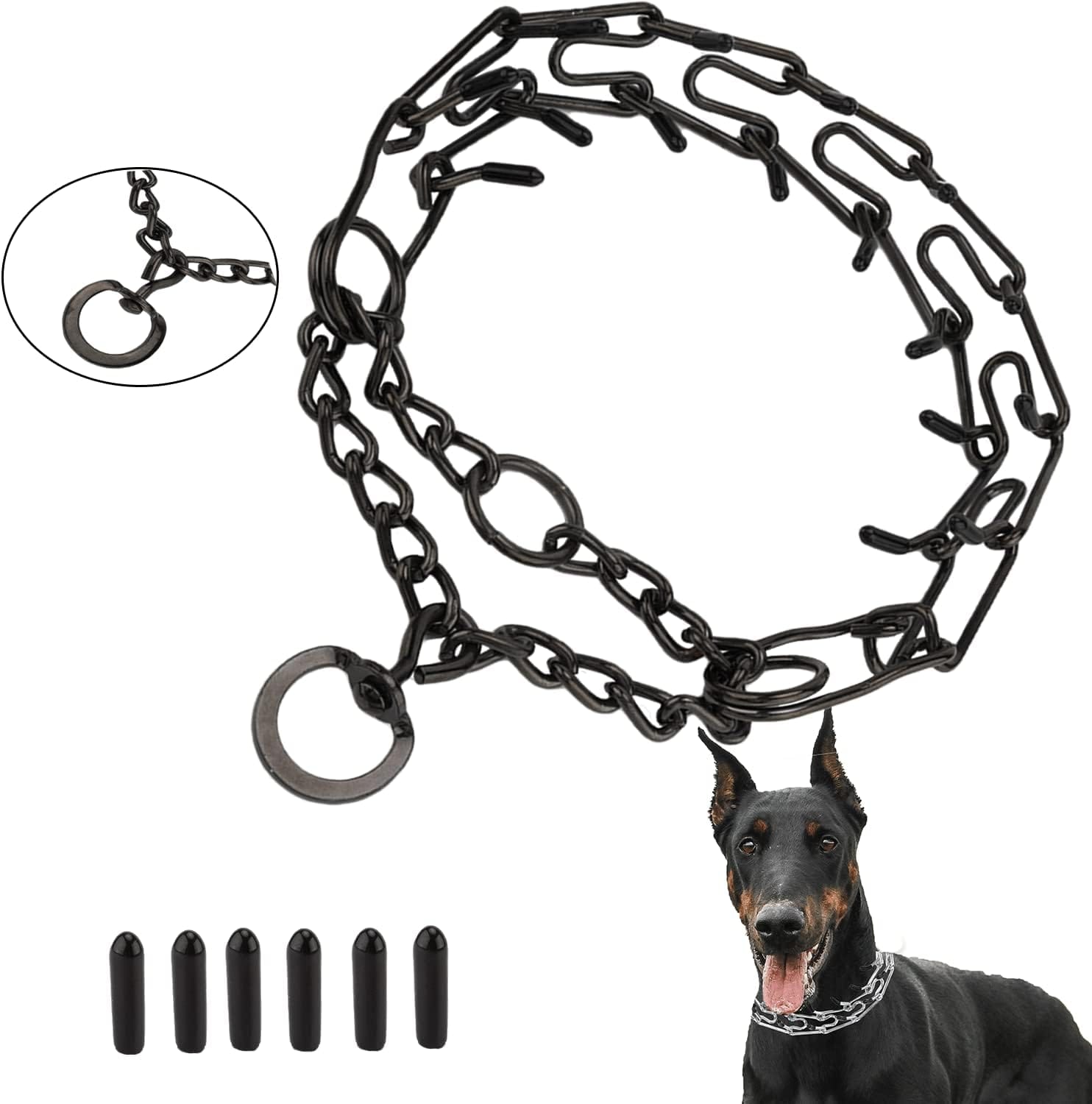 - 【Reasonable Design】Made of high quality iron with chrome plating, this dog prong collar is durable and not easy to rust. The smooth round head design along with the comfortable rubber covers protect the dog’s respiratory tract and sensitive parts of the neck from sharp pricks.The rubber cover needs to be worn by yourself.