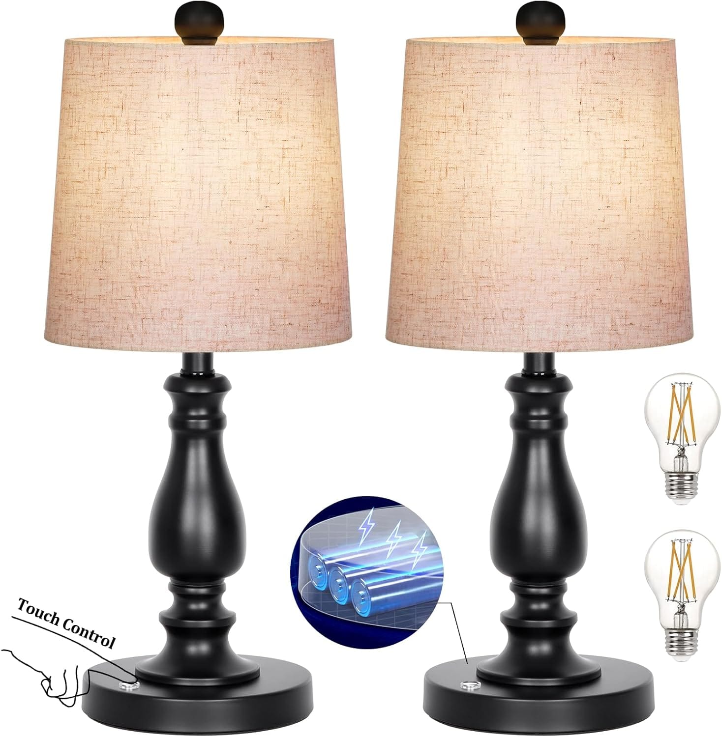 Dott Arts Cordless lamp Table Lamps Set of 2, Battery Powered Rechargeable lamp 3-Way Dimmable Modern Nightstand Lamp Sets Bedside Touch Desk Lamp for Bedroom Living Room, LED Bulbs Included(Black)